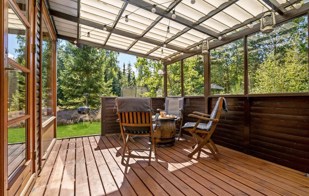 Betreten Sie das gemütliche Holzhaus und fühlen Sie sich wie zuhause. Hier können Sie die Seele baumeln lassen und die Zeit genießen. Im lichtdurchfluteten Wohnzimmer können Sie sich auf dem Sofa austrecken und vom Kamin wärmen lassen, während Sie einen lustigen Film schauen. Auch die anderen Raumen können Sie zusammen die Zeit genießen und zusammen kochen, essen und spielen. Eine Sauna rundet das Angebot des Hauses ab. Verbringen Sie auch gesellige Zeit im Garten. Genießen Sie ein kühles Getränk auf der überdachten Terrasse oder grillen Sie Marshmallows über der Feuerschale. Ihre Kinder können sich auch auf dem Trampolin und den anderen Spielgeräten austoben.