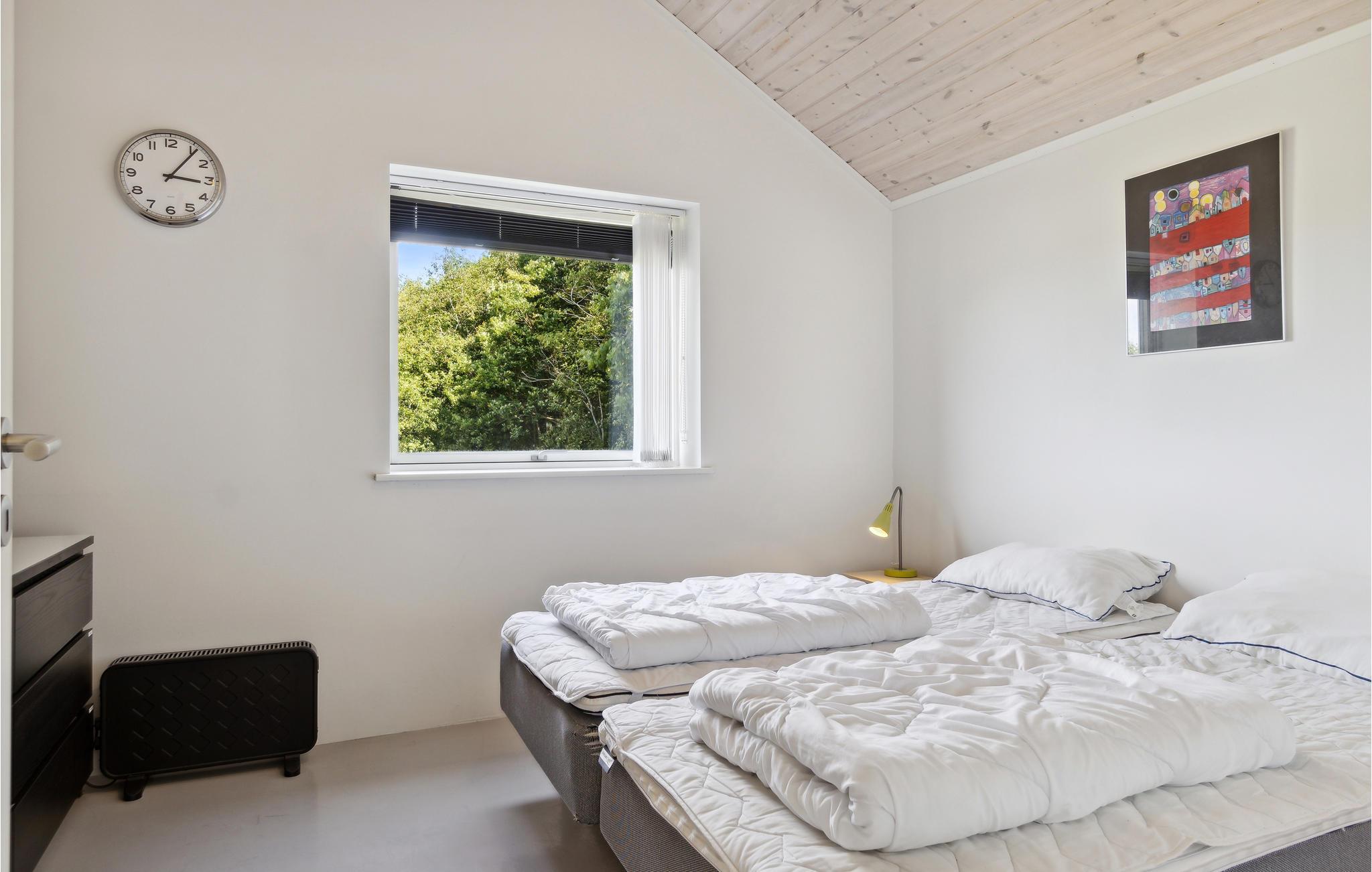 Das Ferienhaus verfügt über eine gute Küche mit Essbereich, Wohnzimmer mit Zugang zu der geräumigen, teilweise überdachten Terrasse. Dort gibt es reichlich Gelegenheit, Schatten und Sonne zu finden, und am Abend können Sie den Grill anzünden und die Ruhe genießen. Es gibt insgesamt drei Schlafzimmer, einen großen Dachboden und ein schönes Badezimmer mit Dusche, Waschmaschine und Trockner. Außerdem eine Garage. Der Zugang zum Dachboden erfolgt über eine Leiter an der Wand.