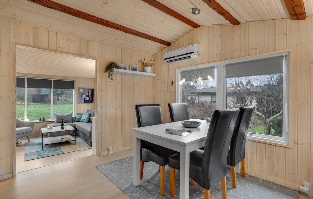 Gemütliche Holzkabine nahe der Küste von Seeland mit Kamin, großem Garten und moderner Ausstattung.