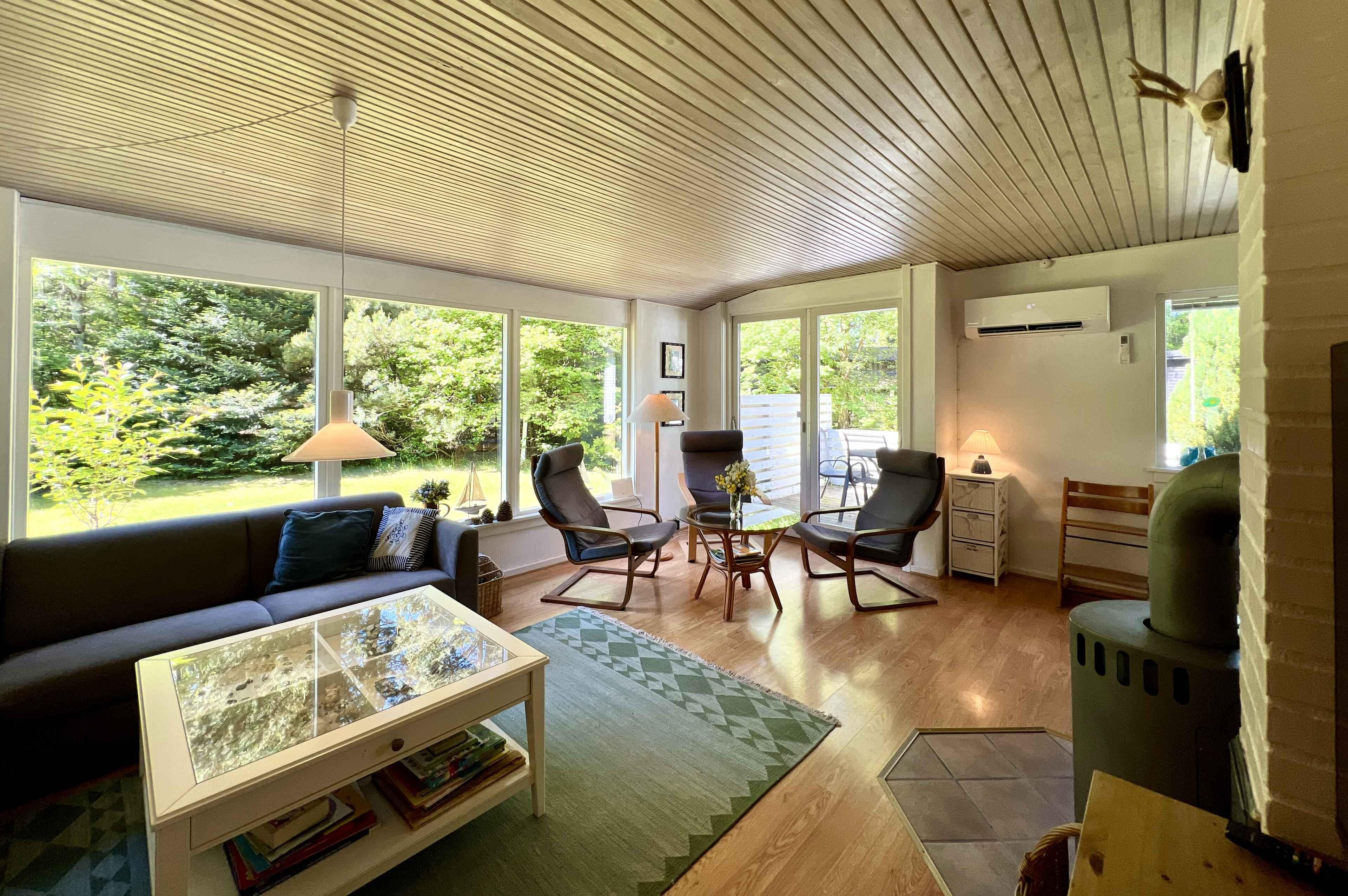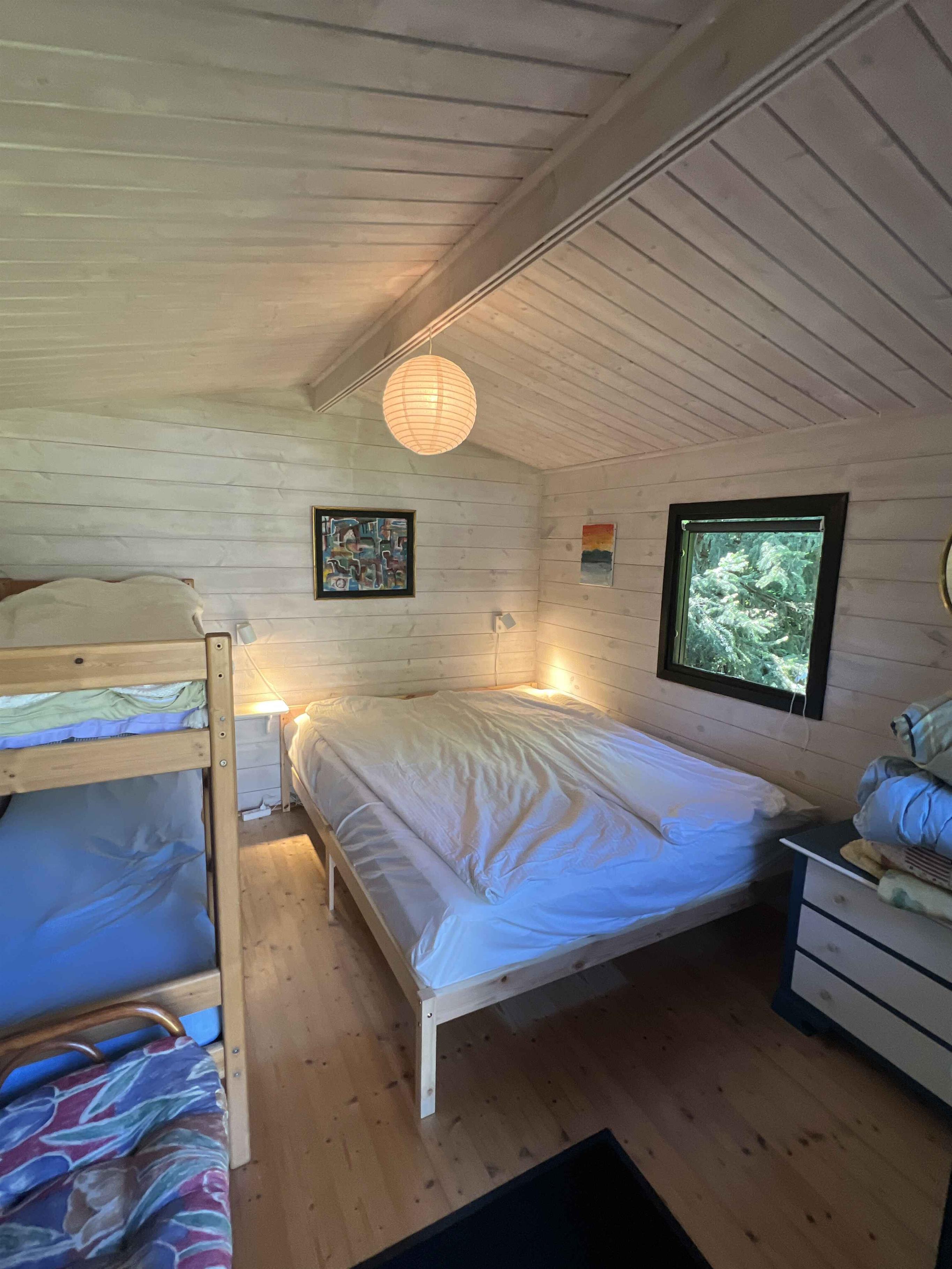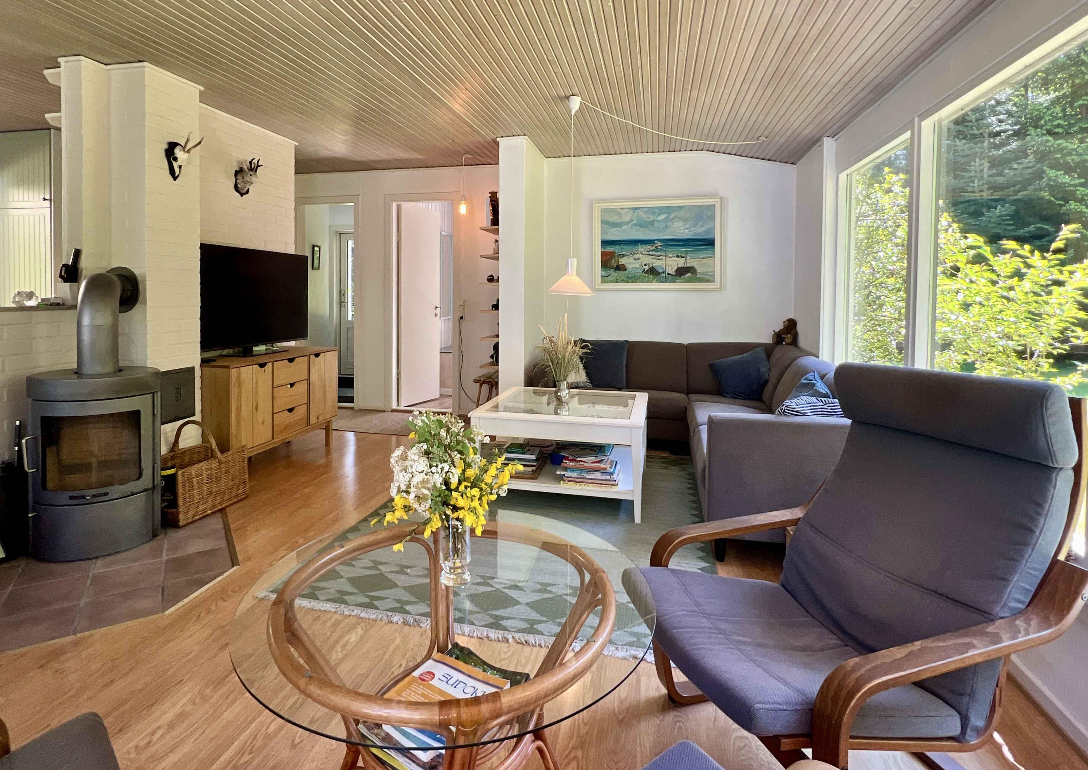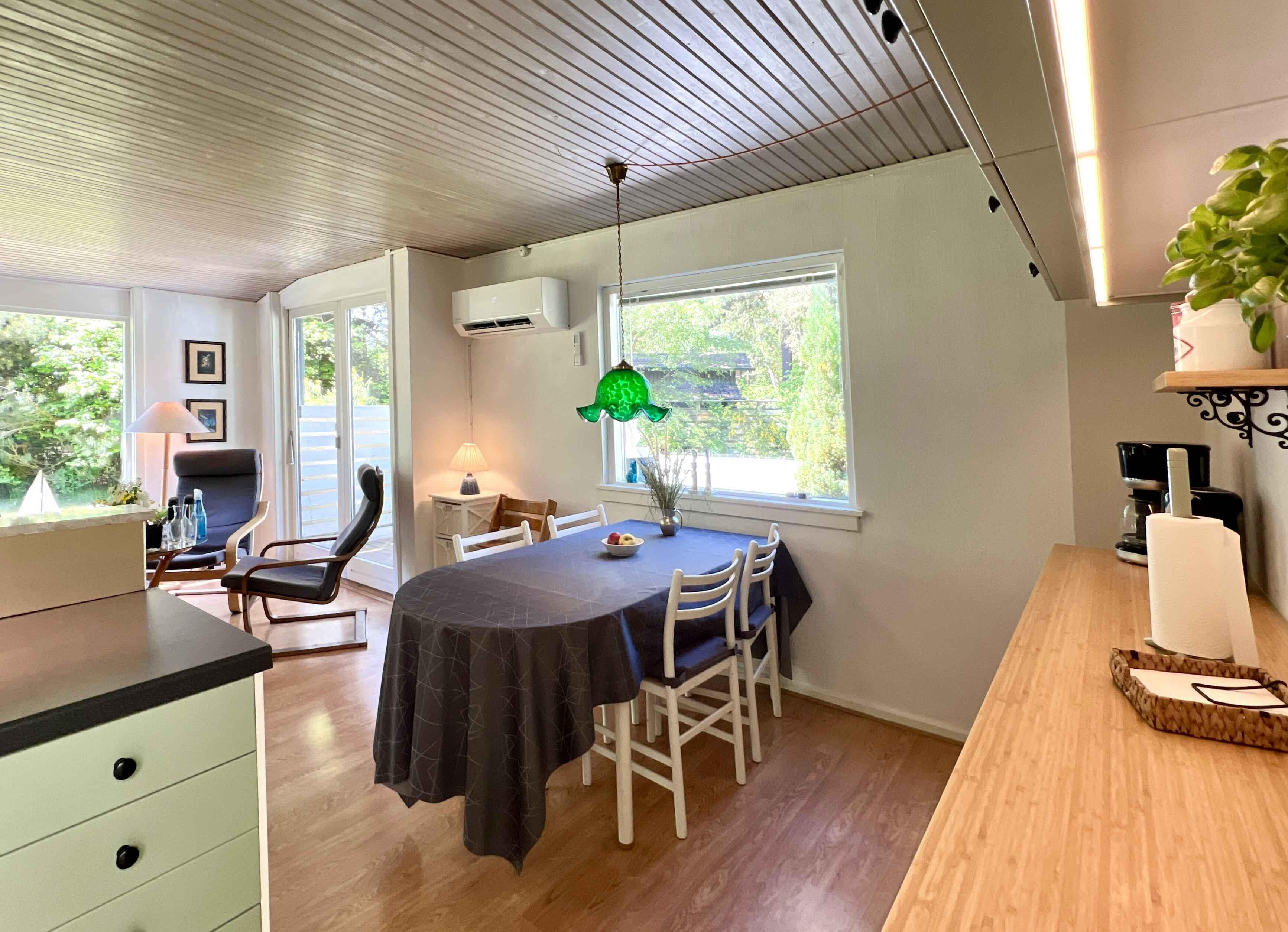 Gemütliches, frisch renoviertes Ferienhaus auf einem großen Privatgrundstück. Nur 10 Minuten zu Fuß zum privaten Teil eines der besten Strände Dänemarks. Das Haus besteht aus einem Hauptgebäude mit Schlafzimmer und Bad sowie zwei großen Terrassen (eine davon überdacht). Zusätzlich gibt es zwei Hütten mit jeweils einem Schlafzimmer. Insgesamt drei Doppelbetten (neu 2025) (King, Queen, Queen) und ein Etagenbett. Komfortabel für 8 Personen, inklusive 2 Kinder im Etagenbett. Gut ausgestattete Küche mit allem, was man zum Kochen braucht (Kaffee, Tee, Vorrat mit Gewürzen). Gartenmöbel und Sonnenliegen vorhanden. Verschiedenes Spielzeug: Bälle, Badminton, Krocket, Sandspielzeug, Wasserpistolen. Es gibt auch einen Bollerwagen für den Strand. Die Umgebung bietet viele Erlebnisse: schöne Natur, Hünengräber, Hafenstadt, Nykøbing Sj., Sommerland Sjælland, Golfclub Odsherred usw. 3 Minuten mit dem Auto zu den Einkaufsmöglichkeiten (Rema Lumsås, SuperBrugsen Højby).
