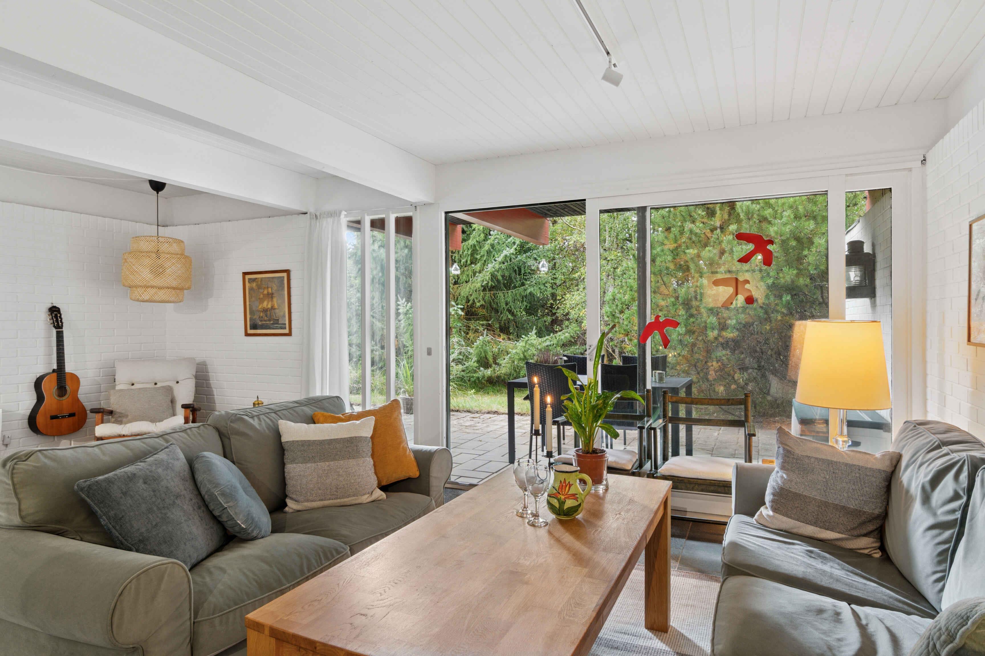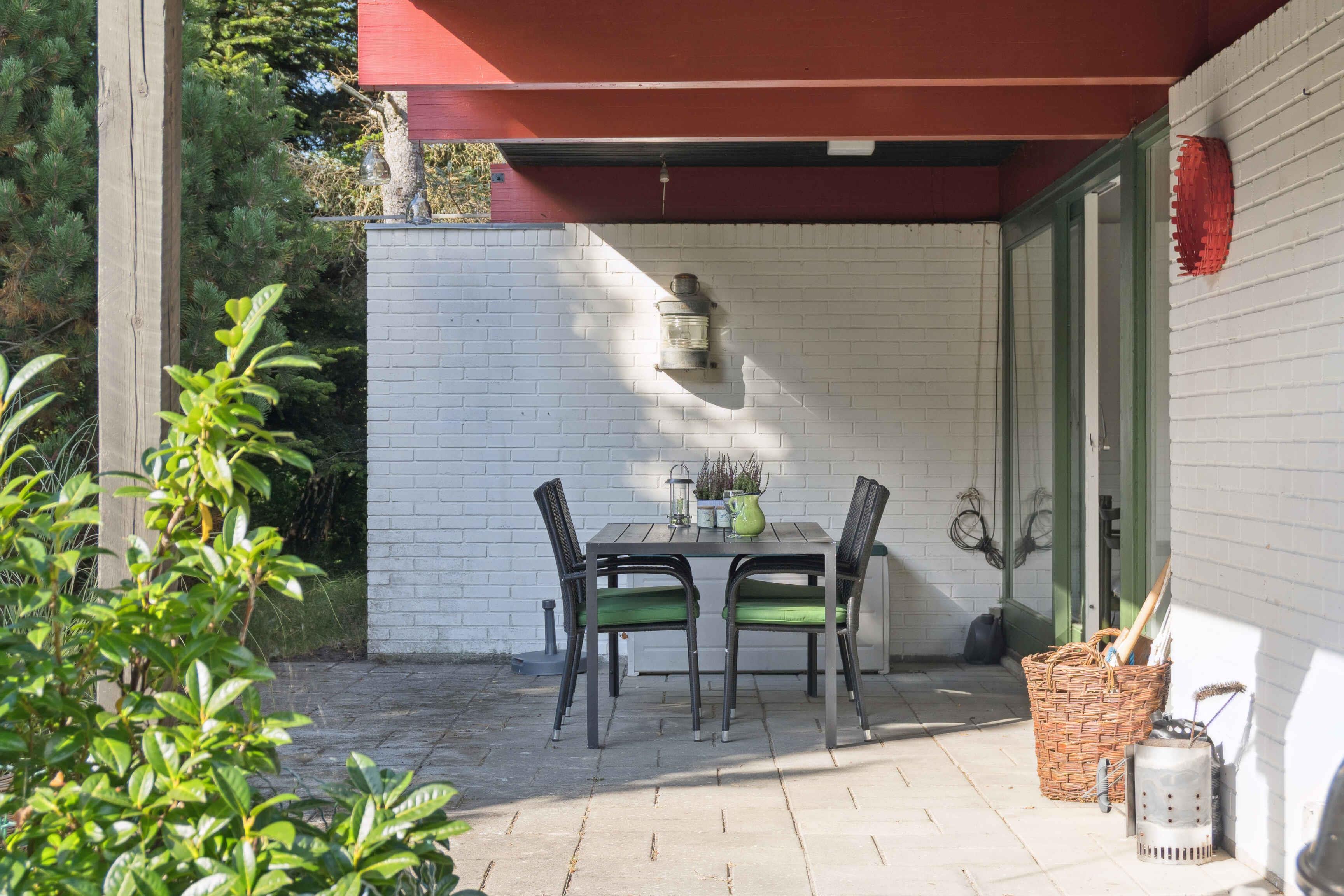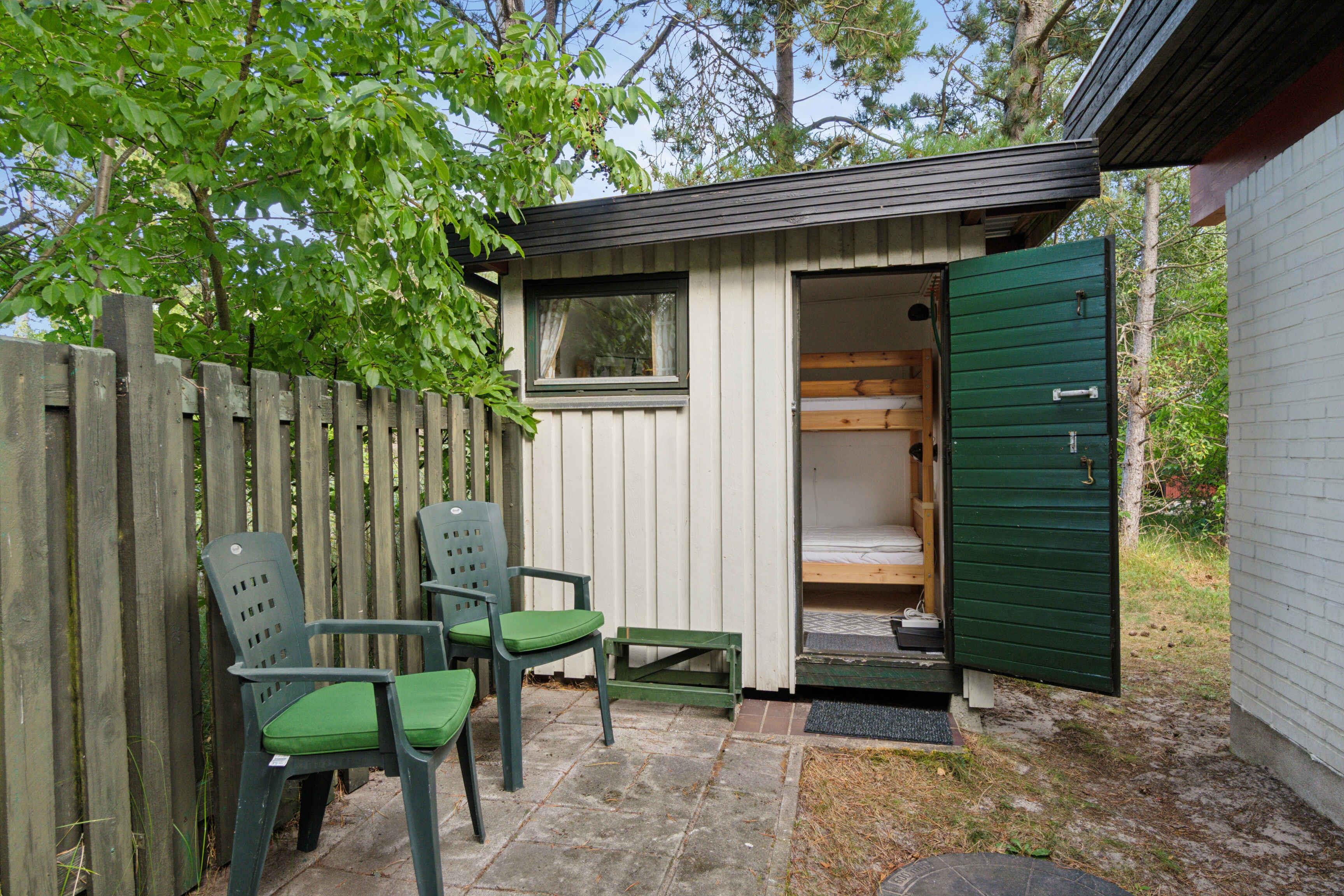Große Wohnküche, Wärmepumpe, Kaminofen, großes Naturgrundstück mit Heide & Bäumen, 2 überdachte & 1 offene Terrasse, kinderfreundlicher Strand, nahe Sommerland Sjælland, Spiele innen/draußen, familiengeeignet, Babyset.