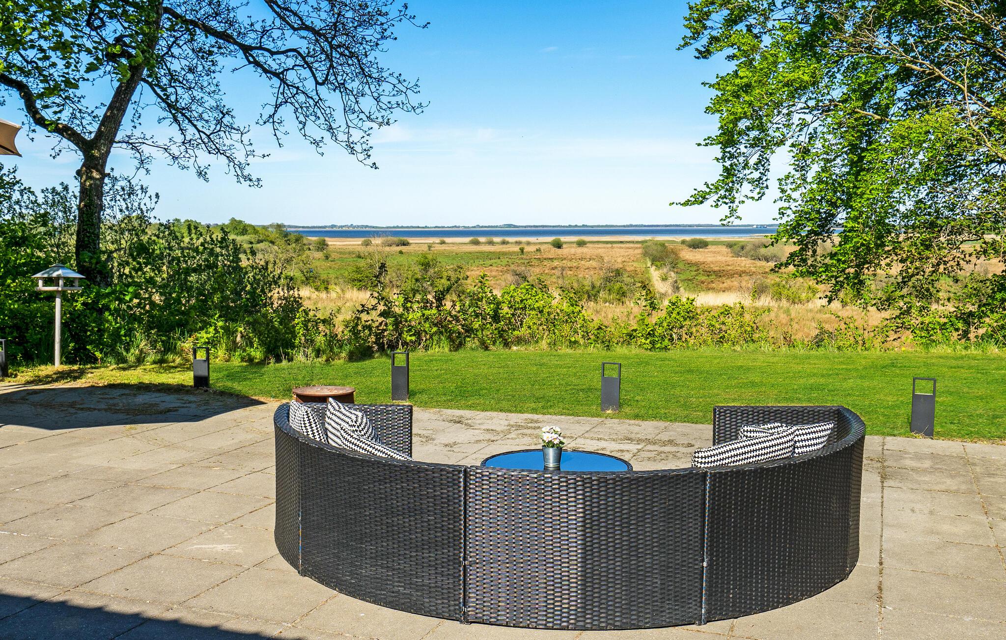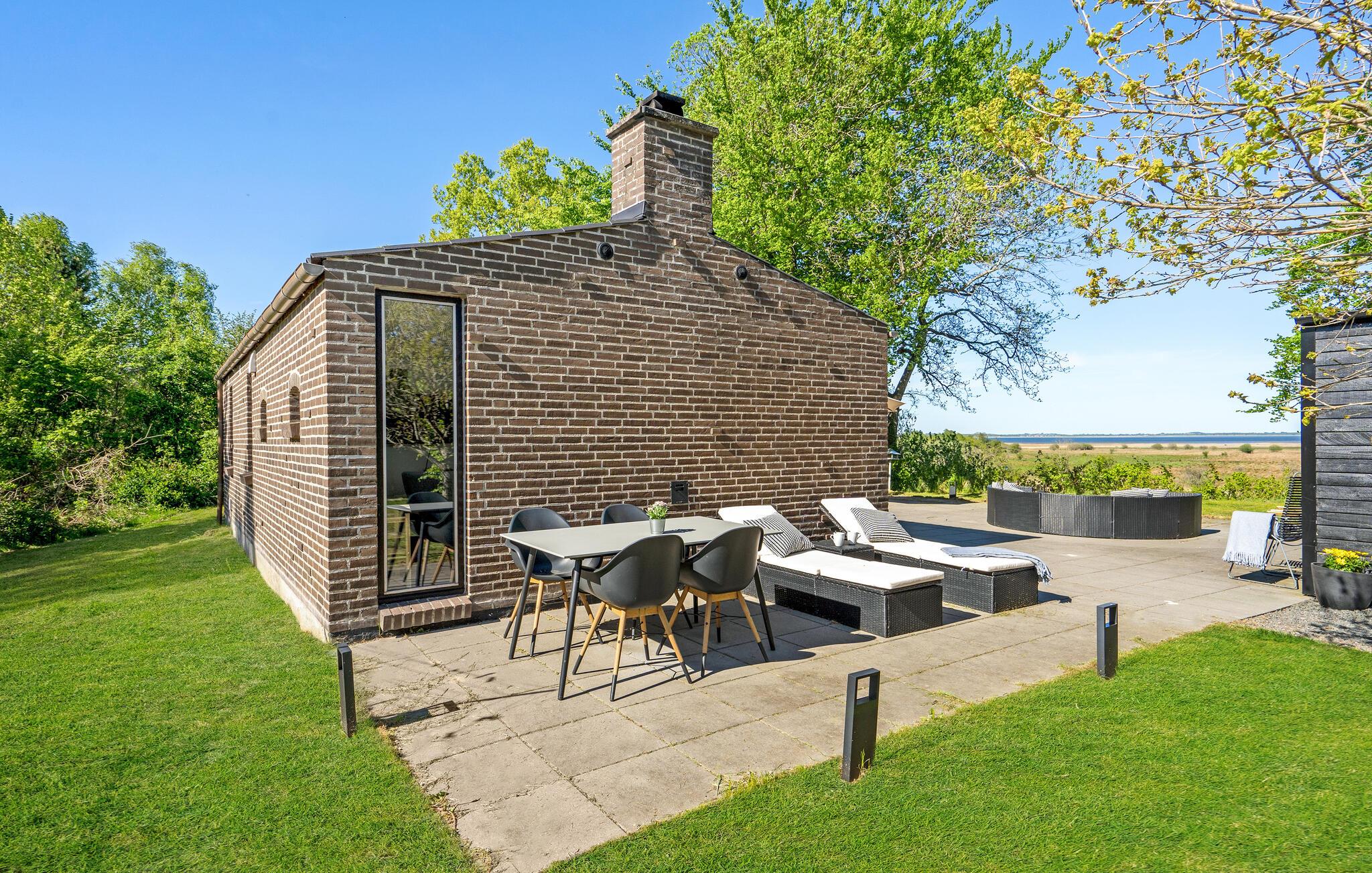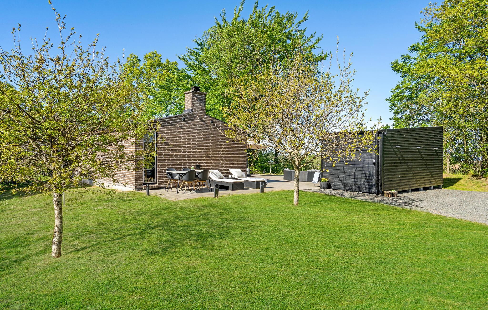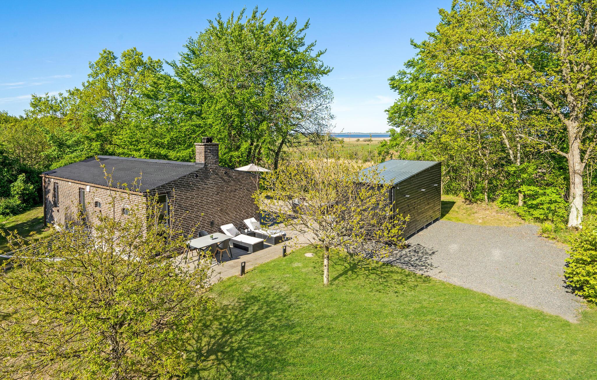 Willkommen in diesem Ferienhaus mit finnischem Holzbad und Blick auf den Mariager Fjord.