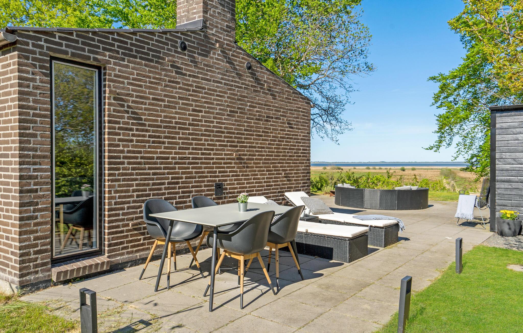 Entspannen Sie in diesem modernen Ferienhaus mit finnischem Holzbad und traumhaftem Blick auf den Mariager Fjord.