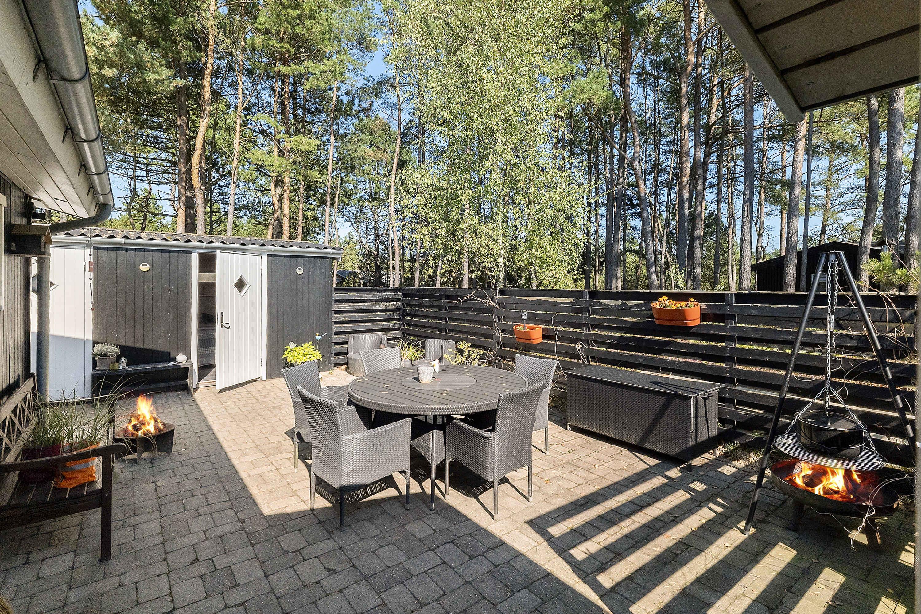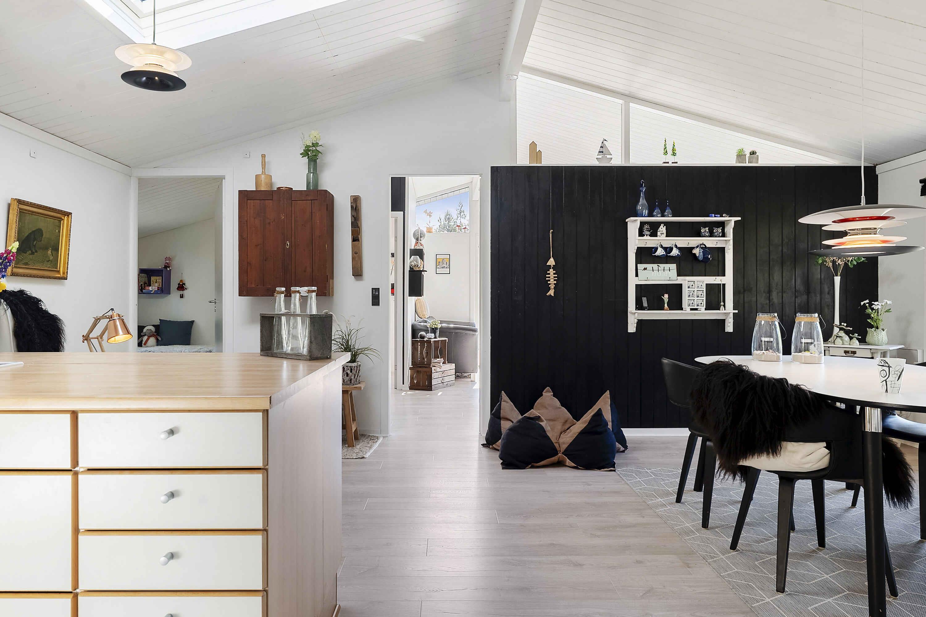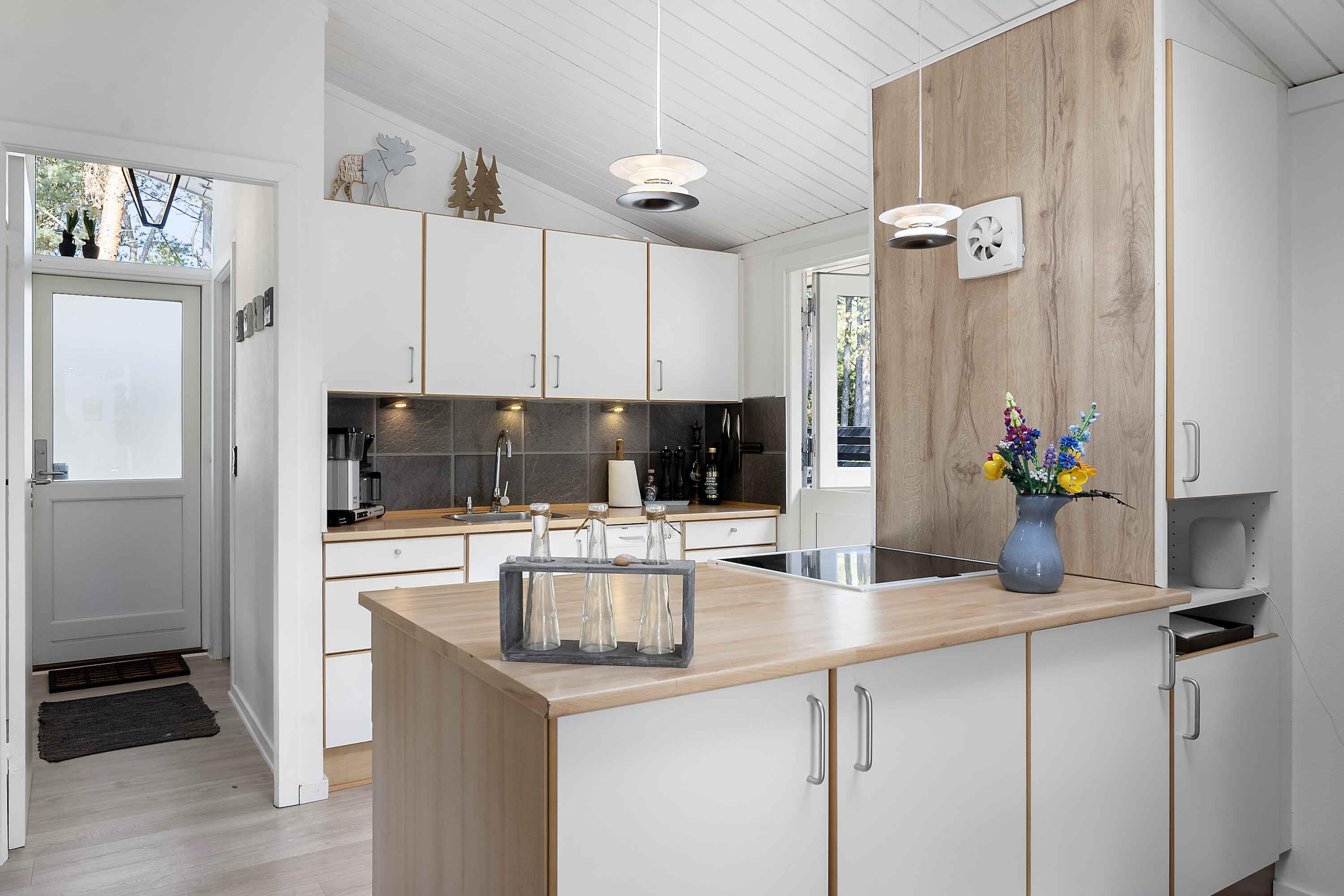 Willkommen in diesem einladenden und geschmackvoll eingerichteten Ferienhaus in Vidjeparken – ein ruhiger Rückzugsort inmitten der schönen Natur Nordjütlands. Hier gibt es viel Platz für Entspannung und gemütliches Beisammensein, drinnen wie draußen. Das Meer ist zu Fuß erreichbar am Ende der Straße, mit flachem und ruhigem Wasser – ideal für Kinder. Wer Fjordatmosphäre bevorzugt, erreicht den Mariager Fjord nach ca. 2,5 km, perfekt zum Baden, Angeln oder Boot zu Wasser lassen. Gönnen Sie sich ein Essen im Café Odden / Hill Billy Grill mit guter Küche und herrlichem Blick über den Fjord. Die Umgebung eignet sich hervorragend zum Wandern und Radfahren. Das Ferienhaus bietet 3 komfortable Schlafzimmer, eine große helle Wohnküche und ein geräumiges Wohnzimmer mit Blick auf das Naturgrundstück – ideal für entspannte Urlaubstage und gemütliche Abende. Eine energieeffiziente Wärmepumpe sorgt ganzjährig für ein angenehmes Raumklima, während der Kaminofen an kühleren Tagen zusätzliche Wärme und echte Ferienhausgemütlichkeit bietet. Draußen erwarten Sie ein schönes Naturgrundstück und mehrere Terrassen, ideal für den Morgenkaffee, ein gutes Buch oder Grillabende in ruhiger Atmosphäre. Sehr familienfreundlich ausgestattet mit Hochstuhl und Reisebett. Hunde sind willkommen, und ein eingezäunter Bereich steht zur Verfügung. Nur 10 Autominuten entfernt liegt Øster Hurup – ein lebendiger Ferienort mit Geschäften, Cafés, Restaurants, Hafen, kinderfreundlichem Sandstrand, Wasserpark und vielen Aktivitäten. Ein ideales Ferienhaus für alle, die Ruhe, Natur und Nähe zu Meer, Fjord und Urlaubserlebnissen suchen.