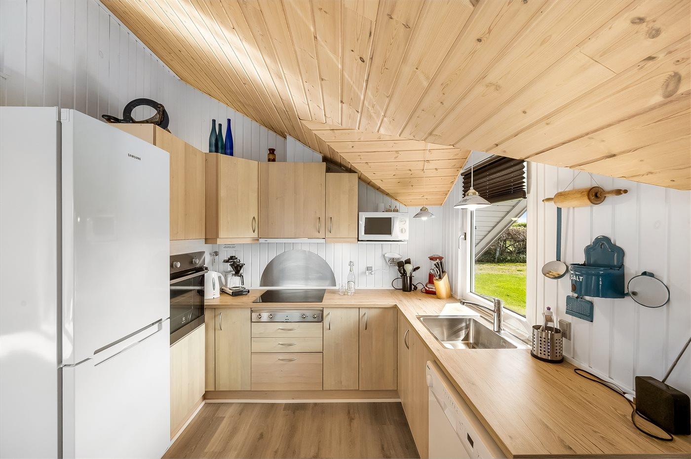 Die Küche ist mit Kühlschrank ausgestattet. Außerdem gibt es 4 Keramik-Kochfelder, Umluftofen, Mikrowelle sowie Geschirrspüler.