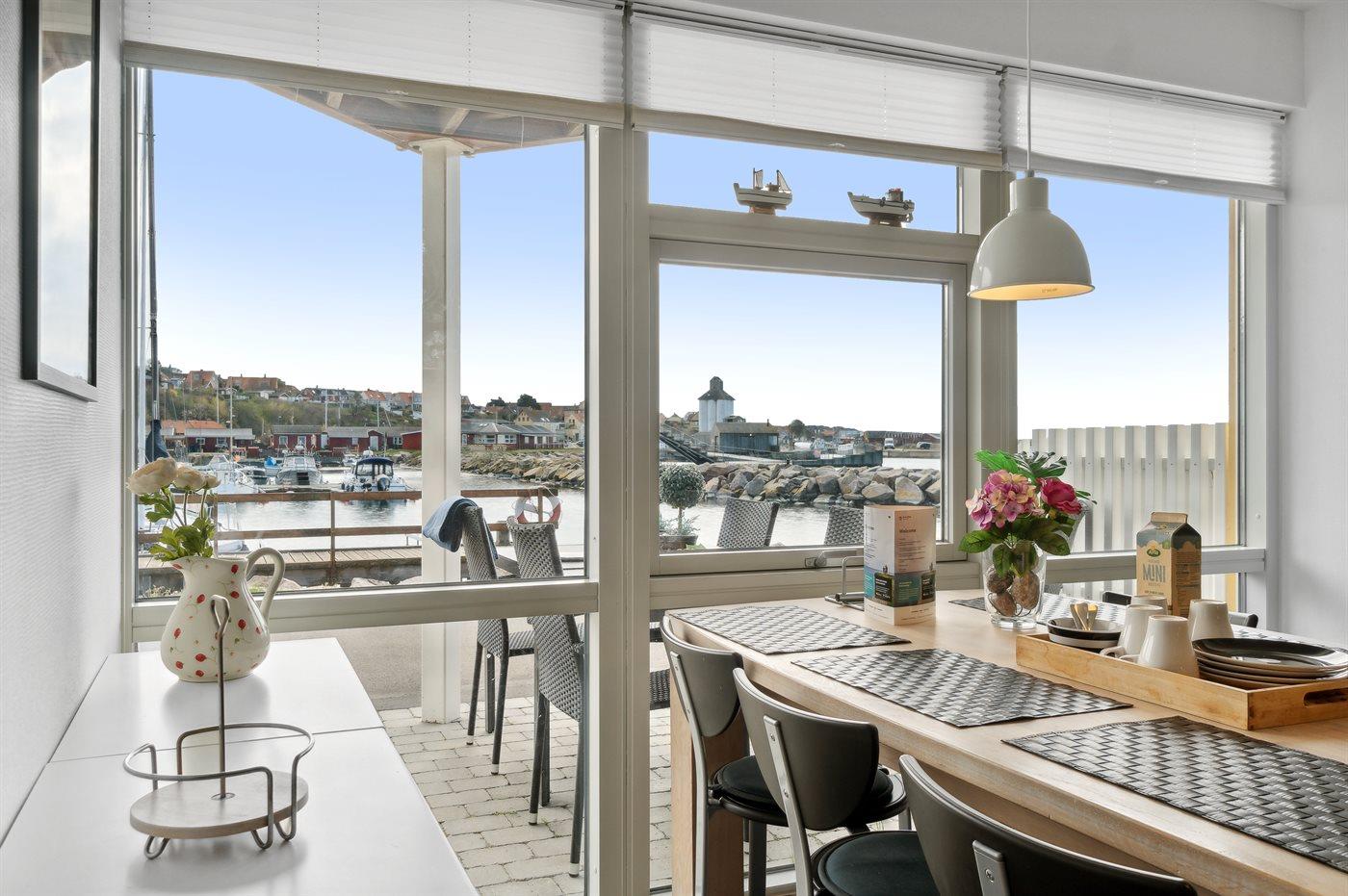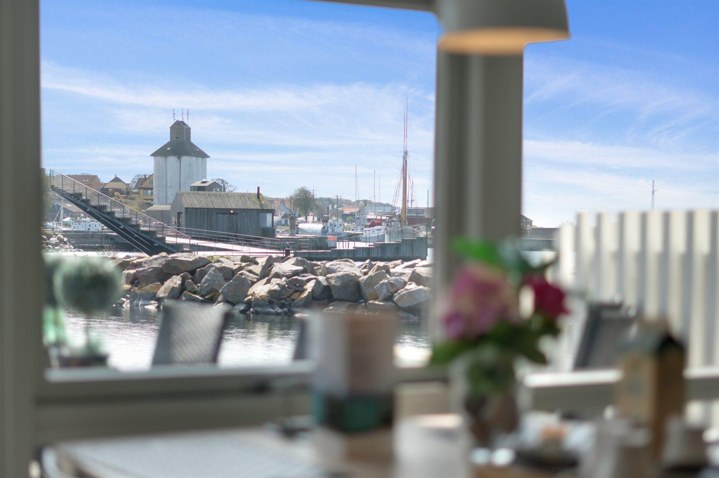 Ein gut eingerichtetes, 2-stöckiges Luxusferienhaus mit einer phantastischen Lage und einer einzigartigen Panoramaaussicht über die Ostsee. Vom Balkon aus kann man das Leben in Hasle Segelboothafen folgen. Das Haus ist 2003 gebaut und liegt auf einem Naturgrundstück mit Felsen und Kai. Große, versetzte Holzterrasse gegen das Meer gelegen.