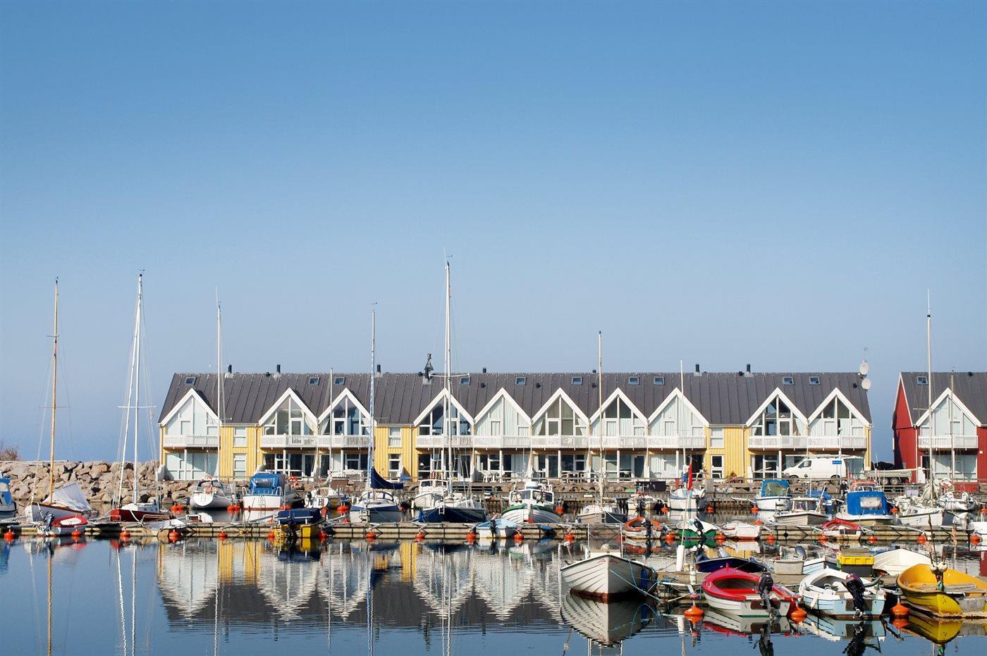 Ein schönes Luxusreihenhaus dicht am Wald, Sandstrand und der Stadt Hasle mit Räucherei und einem maritimen Leben.