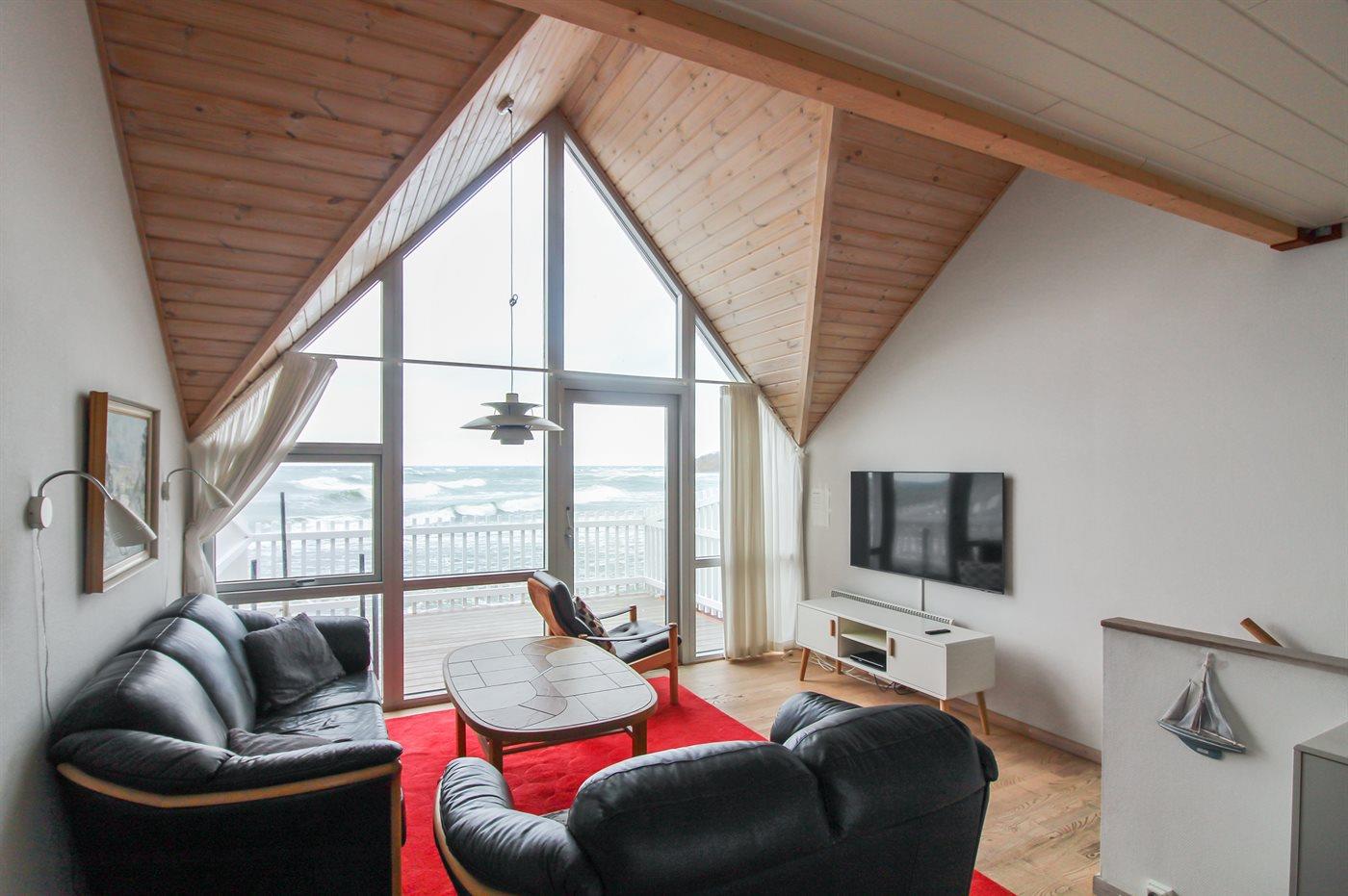 Gut eingerichtetes Ferienhaus mit einer fantastischen Lage und Panoramaaussicht auf die Ostsee. Das Haus liegt auf einem Grundstück mit Felsen und Kai. Auf der einen Seite des Hauses gibt es eine große, in versetzter Ebene liegende Holzterrasse zum Meer hinaus und auf der anderen Seiten eine weitere Terrasse sowie einen Holzbalkon mit Aussicht auf den idyllischen Hafen von Hasle mit Fischer- und Seegelbooten. Innen gibt es Klinkerböden im Erdgeschoss und Holzböden im Obergeschoss. Die Küche liegt in Verbindung mit der Essabteilung. Ferner offenes Obergeschoss mit 2 Schlafplätzen. Gemeinschaftsparkplatz.