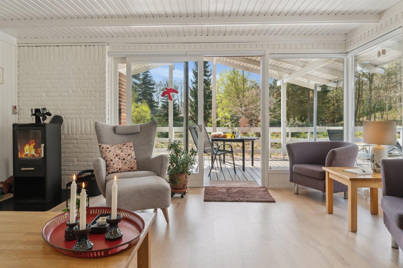 Das Haus grenzt im Westen an ein Naturschutzgebiet mit Wald, und das Naturgrundstück wächst zudem wild, was eine fantastische, ungestörte Atmosphäre schafft. Du wirst auch von Wildtieren wie Rehen und spannenden Vögeln auf dem Grundstück bereichert. Das Haus hat drei Terrassen, auf denen du die Möglichkeit hast, eine leckere Mahlzeit sowohl auf dem Kohle- als auch auf dem Gasgrill zuzubereiten. Die Terrassen wenden nach Osten, Süden und Westen, sodass du den Sonnenlauf den ganzen Tag verfolgen kannst.