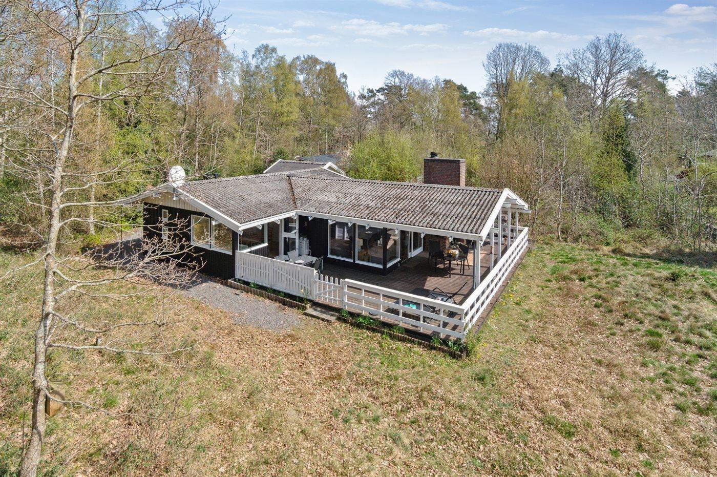 Landschaftlich gelegenes Ferienhaus in Sorthat mit drei Terrassen und Nähe zum Badestrand.