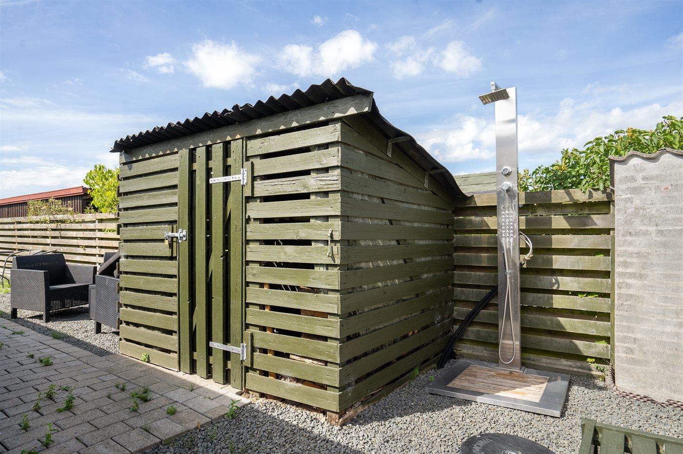 Die Ferienunterkunft liegt auf einem 506 m² großen Gartengrundstück. Die Entfernung zum Meer beträgt 35 m. Die nächste Einkaufsmöglichkeit liegt 5600 m entfernt. Es steht ein offenes Terrassenareal zur Verfügung. Außerdem gibt es überdachte Terrasse. Geräteraum. Trampolin.Lagerfeuerstelle. Außendusche. Es steht ein Grill zur Verfügung. Es ist ein Ladestecker für Elektroautos installiert. Ladestecker Typ 2. Mit einer Ladeleistung von 22 kW. Parkplatz auf dem Grundstück.