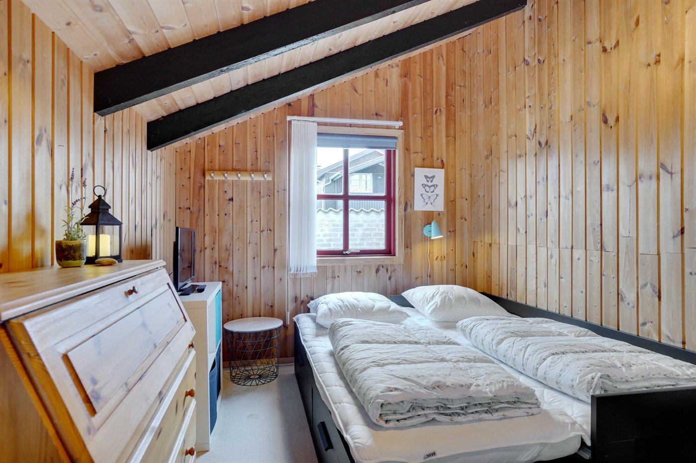 In zweiter Reihe zum schönen Badestrand in Hasmark liegt dieses gemütlich eingerichtete Ferienhaus. Zum Haus gehört ein schöner Terrassenbereich und es gibt Zugang zu einer offenen Grünfläche, die im Anschluss an das Grundstück liegt. Übrigens: 2 der Schlafplätze befinden sich in einem Alkoven im Wohnzimmer. Das Doppelbett im großen Schlafzimmer ist besonders breit, daher ist ein Laken mit einer Breite von 210 cm mitzubringen.
