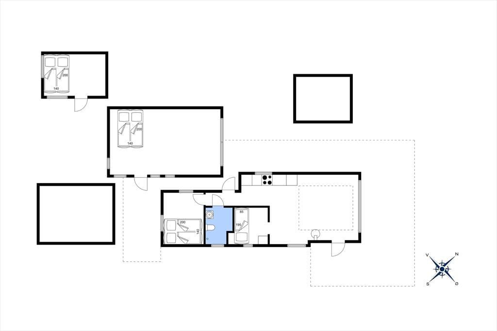 Das Ferienhaus liegt direkt am kinderfreundlichen Badestrand und begrüßt Sie mit einem Wohnraum, der über einen Kaminofen und direkten Zugang zur Holzterrasse verfügt und Sie mit einer fantastischen Aussicht über das Wasser begeistern wird. Die praktische Küche befindet sich in offener Verbindung zum Wohnraum. Eine kleine Kombi-Mikrowelle ist vorhanden. Das Haupthaus beinhaltet darüber hinaus einen Schlafraum mit einem Doppelbett und ein Badezimmer mit einer Dusche. Das große Nebengebäude umfasst ein Doppelbett, einen Tischkicker und einen zusätzlichen Fernseher. Im kleineren Nebengebäude ist ein weiteres Doppelbett untergebracht.