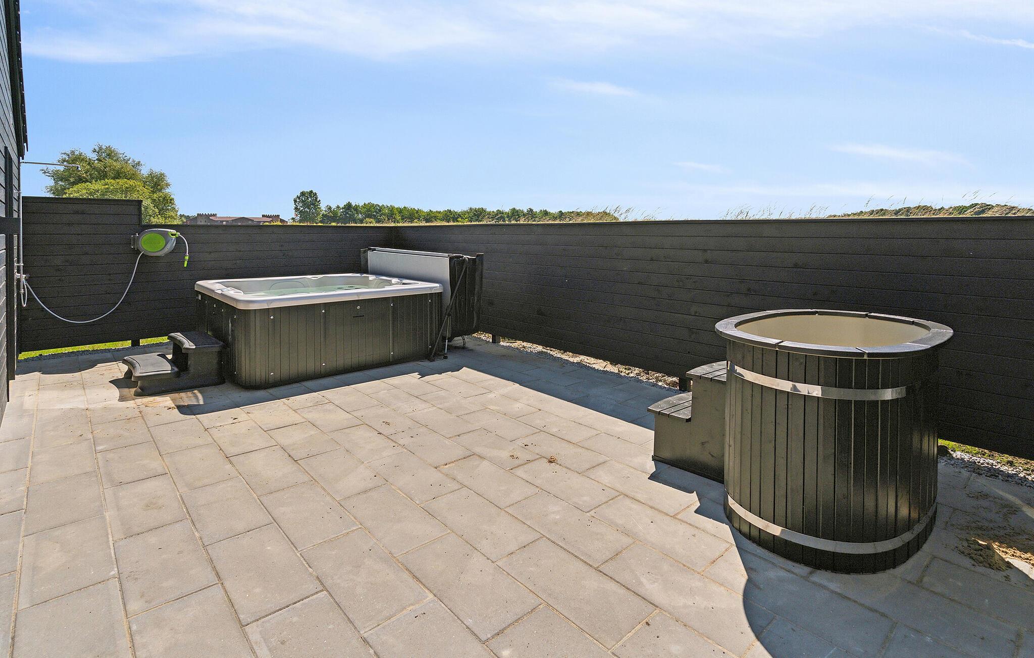 Entspannen Sie auf der Terrasse in der hauseigenen Wellnesszone mit Outdoor-Whirlpool, Kaltwasserbecken für Mutige, Außendusche und Sauna. Genießen Sie auch Ihre Mahlzeiten draußen und nutzen Sie die bequemen Gartenmöbel und den Grill. Während die Erwachsenen entspannen, spielen die Kinder im Garten auf dem Trampolin, schaukeln oder toben im Spielturm.