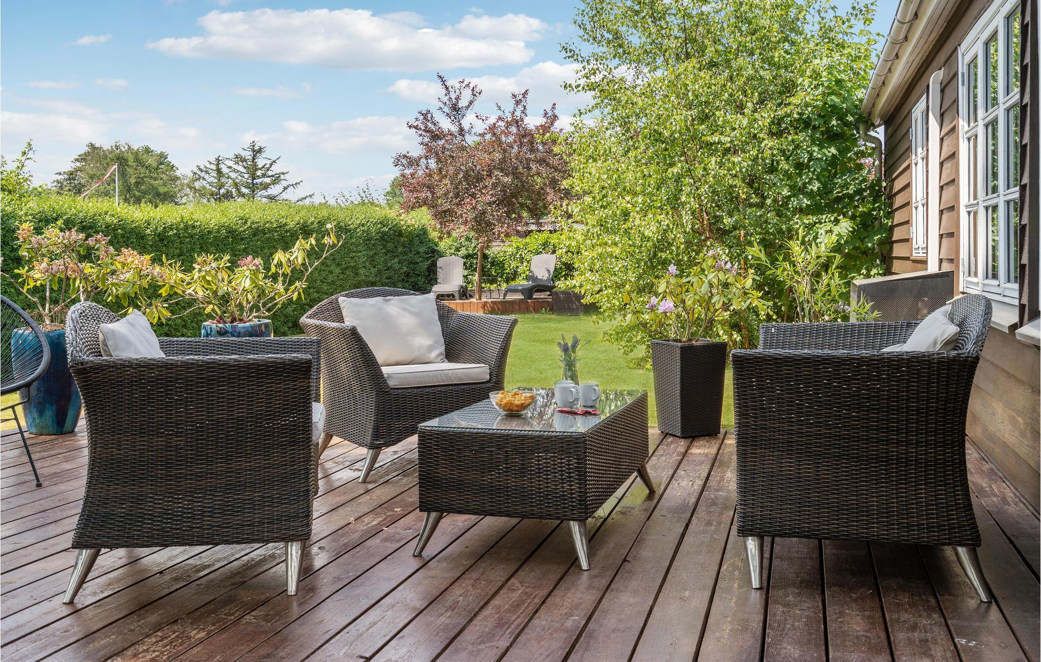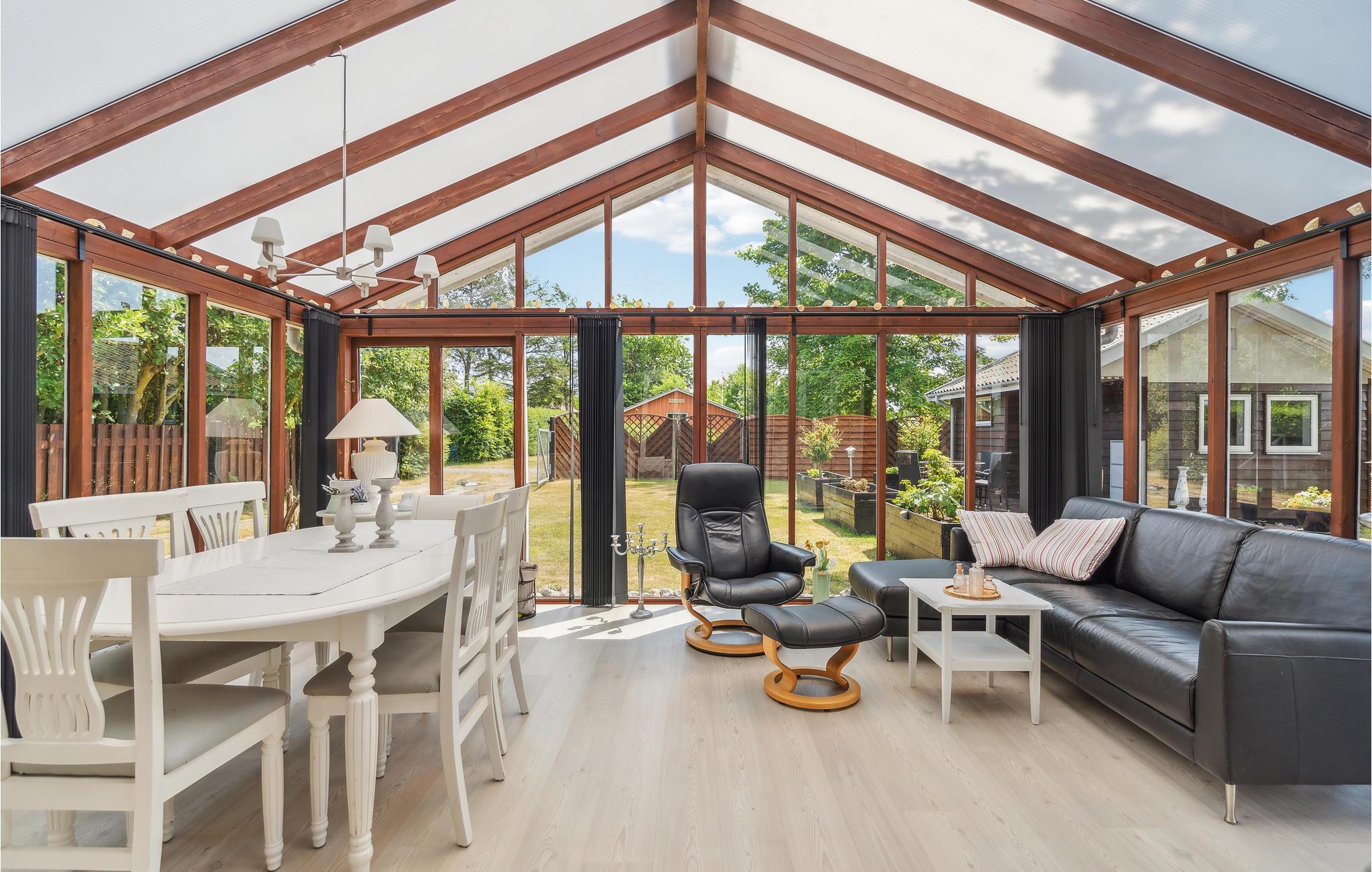Gemütliches Ferienhaus nahe Hasmark Strand mit Wintergarten, großem Garten und hochwertiger Ausstattung für entspannte Familienurlaube.