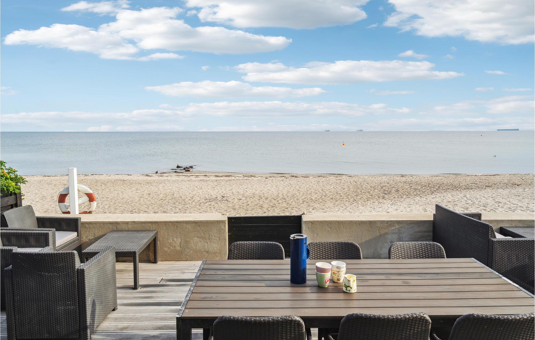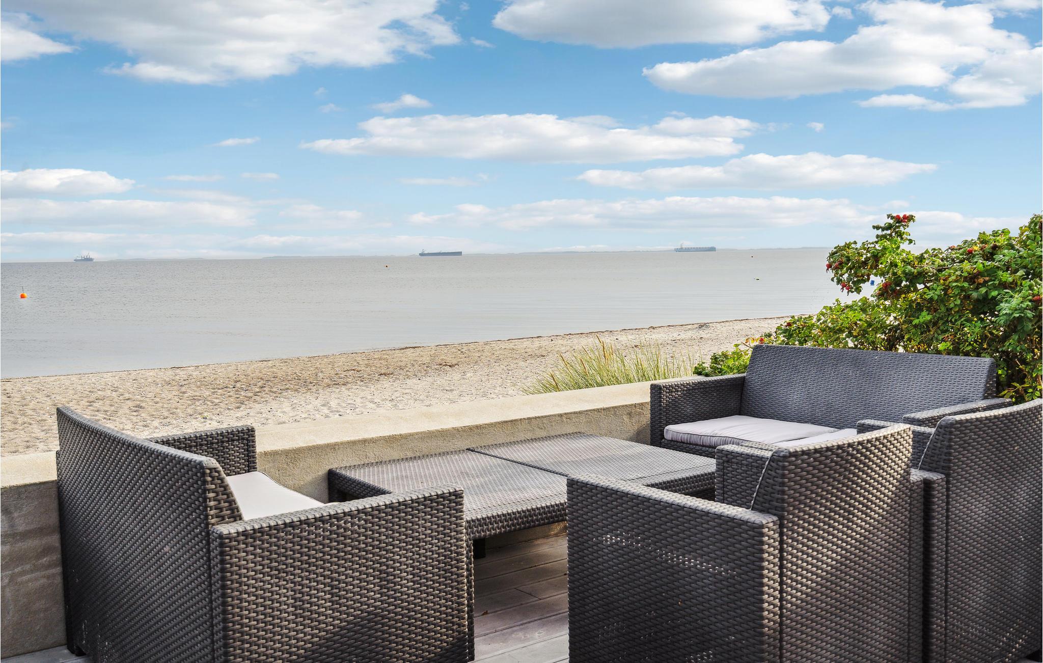 Genießen Sie ein gemütliches Ferienhaus mit Panoramablick direkt am Meer in Hasmark Strand, Dänemark.