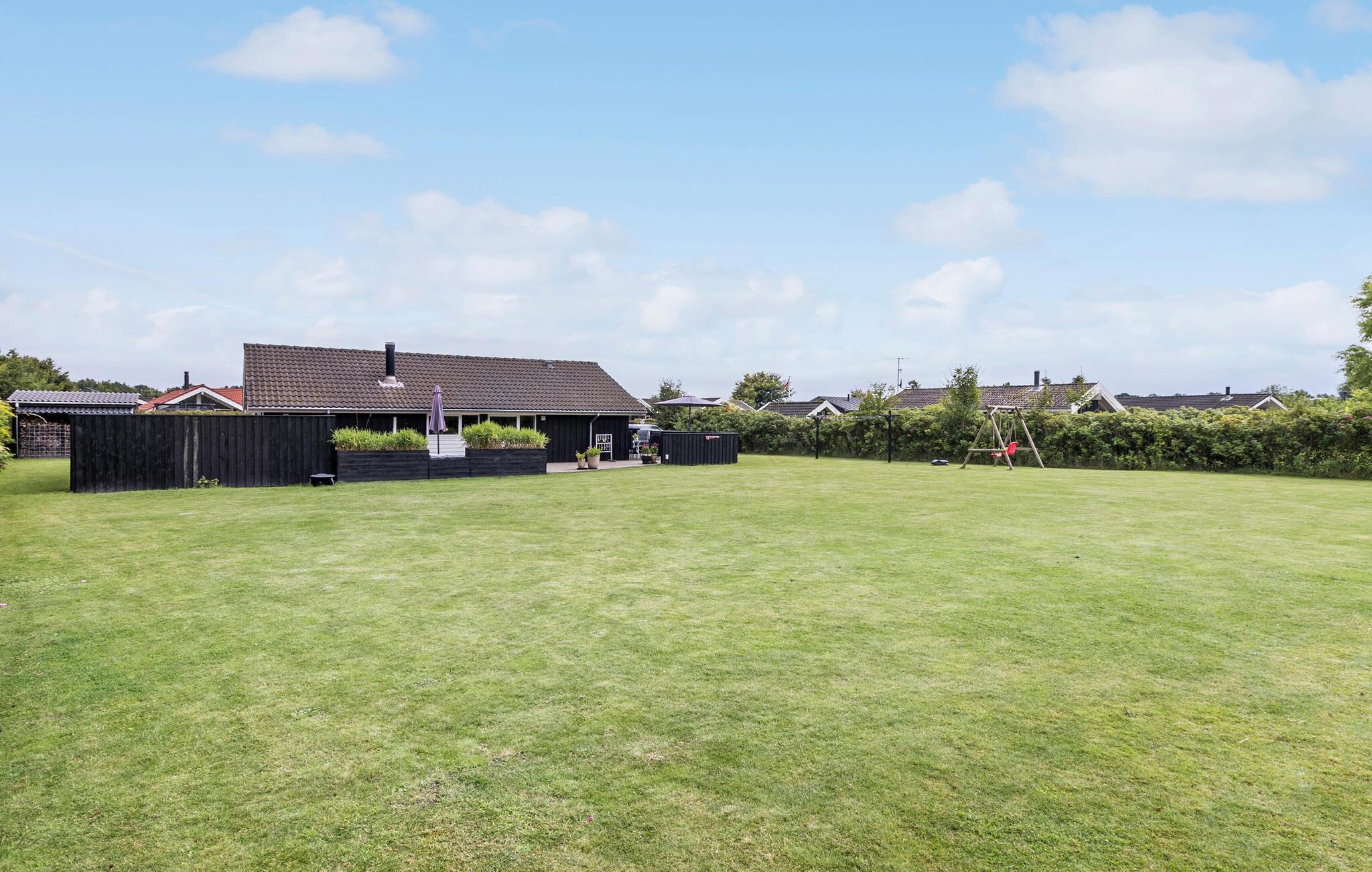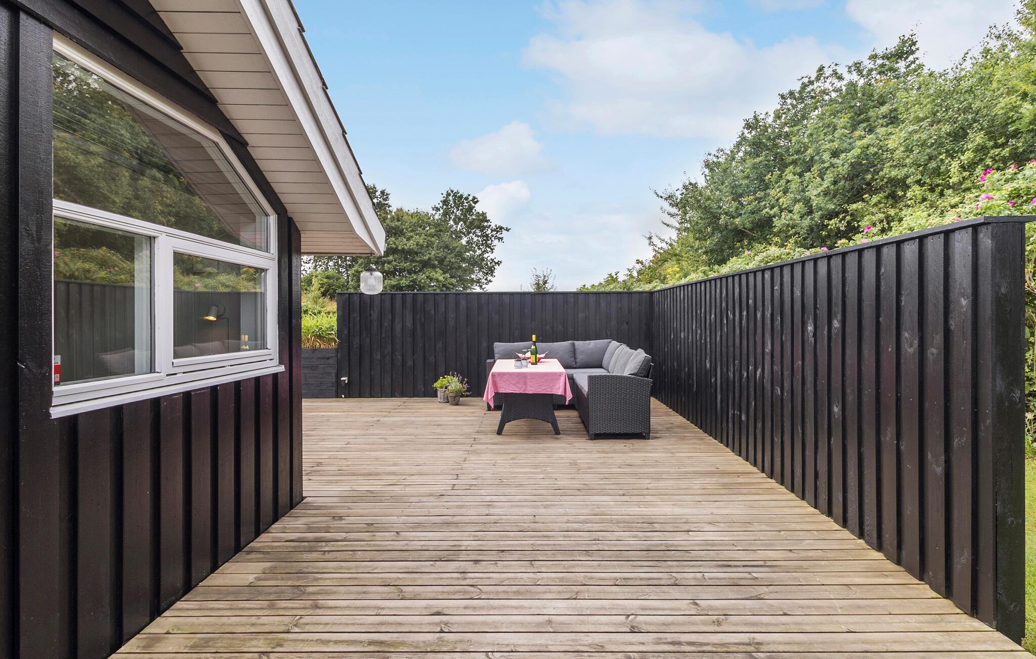 Willkommen am beliebten Hasmark Strand im Norden der Insel Fünen. Hier können Sie nicht nur die Nähe zum Meer, sondern auch die Ruhe und Privatsphäre der idyllischen Umgebung genießen. Verbringen Sie erholsame Tage in Ihrem Ferienhaus, das von einer großen Holzterrasse umgeben ist. Lassen Sie die Seele baumeln und genießen Sie die frische Luft bei einem Frühstück im Freien. Nutzen Sie den privaten Garten, der ideal für gemeinsame Grillabende oder ausgelassenes Spielen mit der Familie ist. Ihre Kinder können sich hier auf der Schaukel und im Sandkasten vergnügen, während Sie sich auf die Terrasse setzen und die entspannte Atmosphäre genießen.