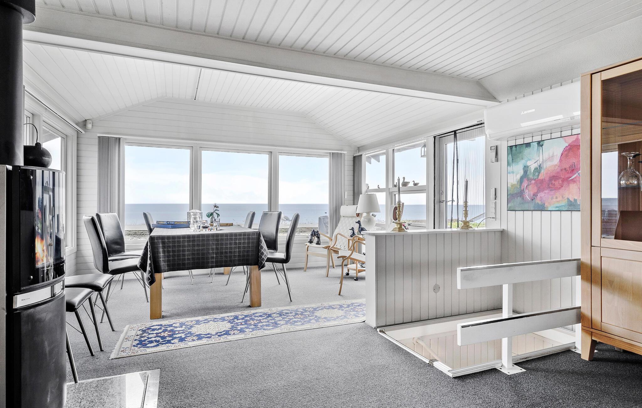 Genießen Sie einen fantastischen Panoramablick von der Terrasse dieses Strandhauses am beliebten Hasmark Strand.
