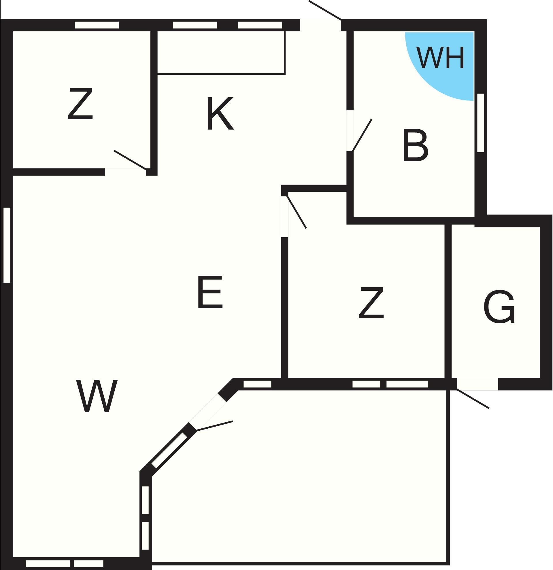 Bad: WC, Waschb., Dusche, Fußbodenheiz.