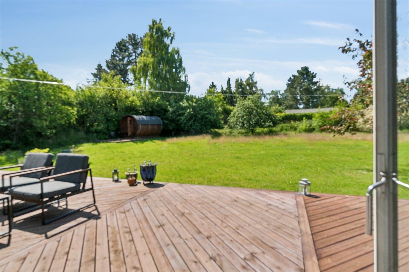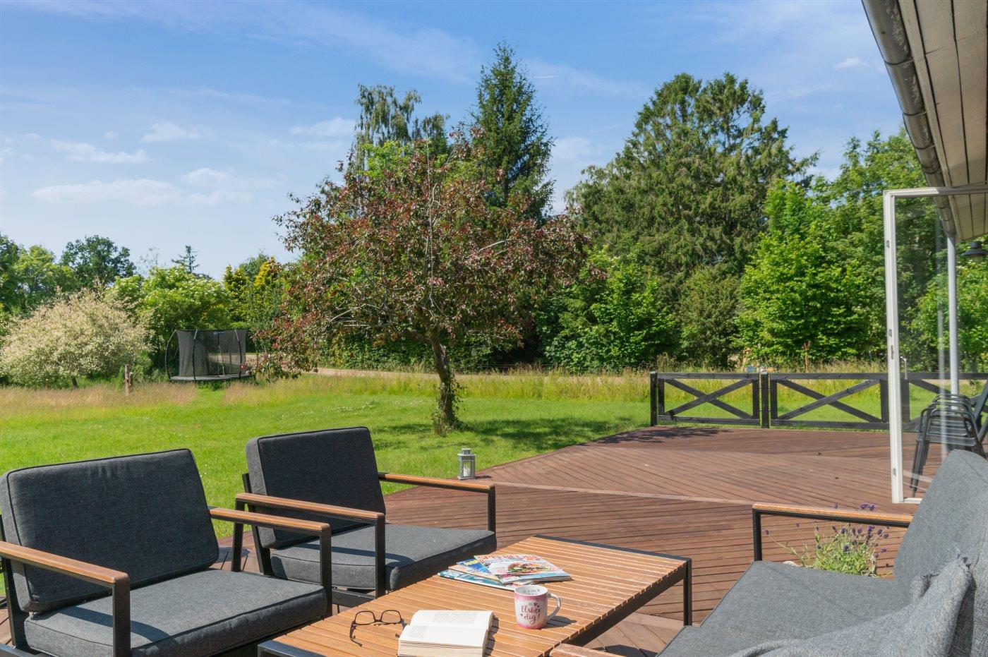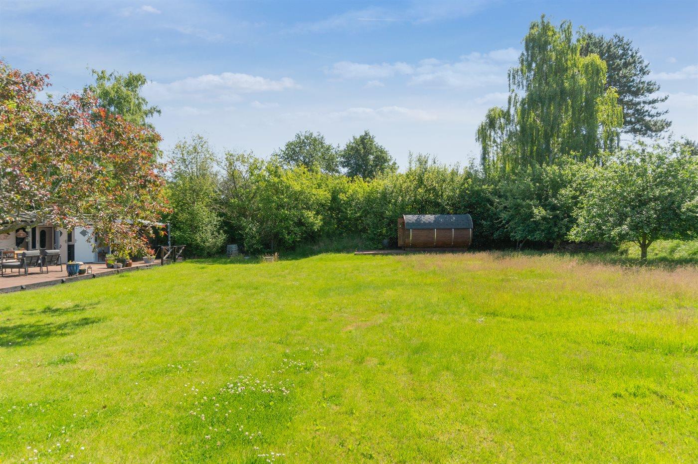 Das Haus liegt auf einem großen Grundstück, das teilweise als Naturgrundstück angelegt ist – ideal für Ballspiele und andere Aktivtäten im Freien.