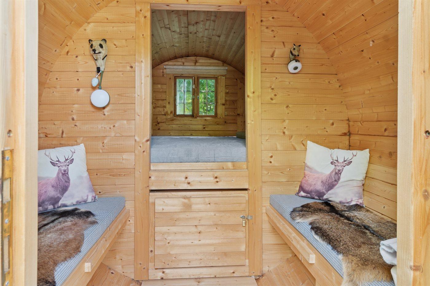 Die Schlafplätze verteilen sich auf 3 Schlafräume. 4 Schlafplätze in Doppelbetten.1 Schlafplatz in einem Einzelbett. 3 von diesen Schlafplätzen befinden sich in einem Gästehaus (auf 2 Schlafzimmer verteilt).