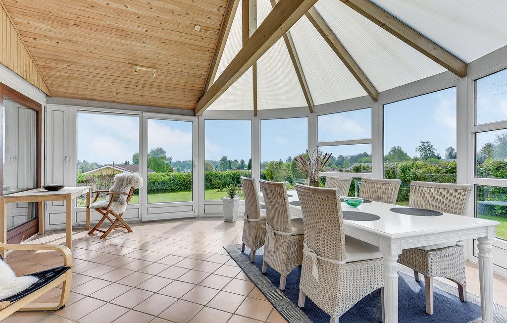 Großzügiges Ferienhaus mit Wintergarten und Meerblick in Hejlsminde, ideal für entspannte Urlaubstage.