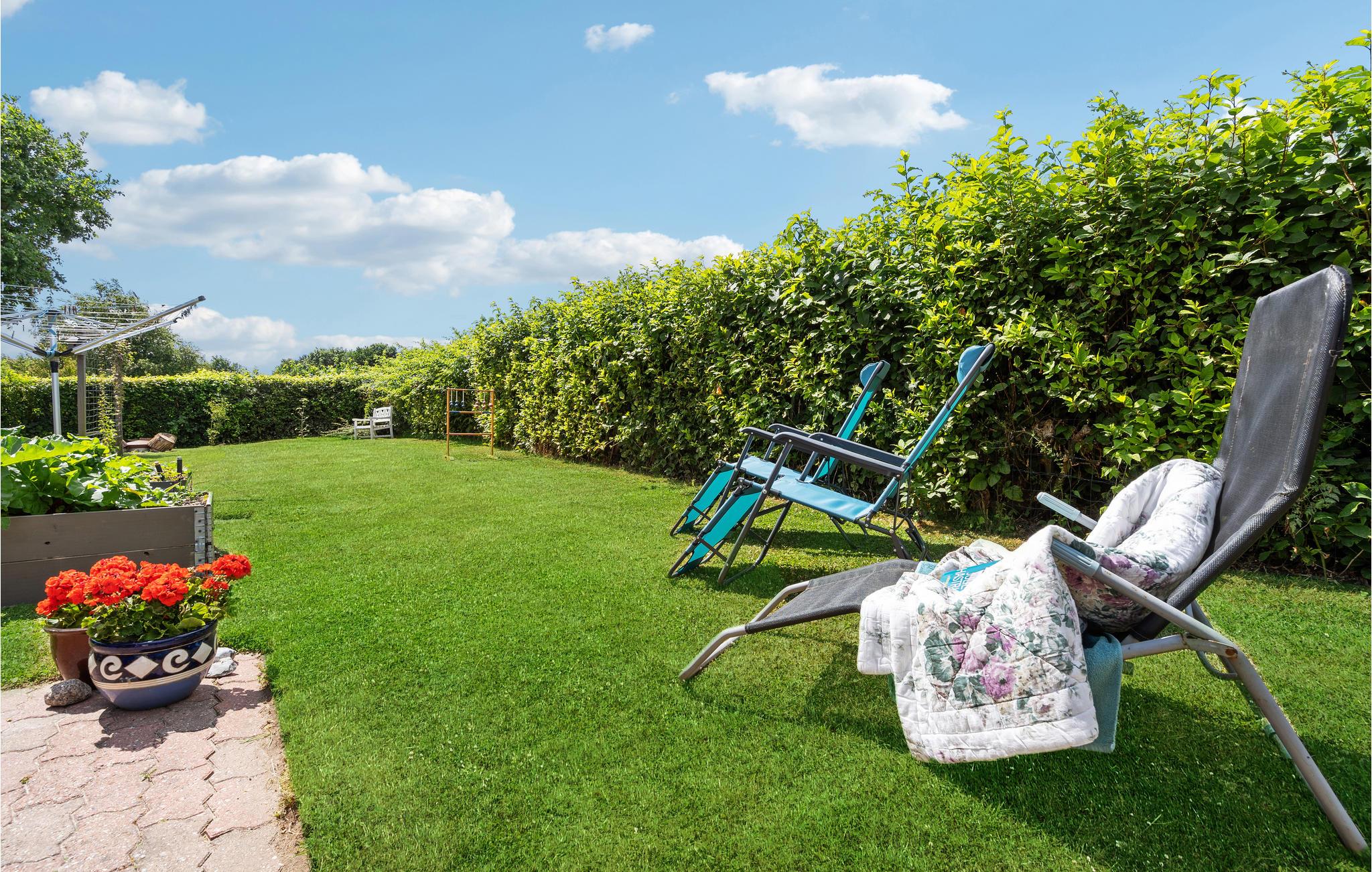 Verbringen Sie gesellige Stunden im beeindruckenden Wintergarten mit seiner hohen Holzdecke und dem umlaufenden Glas, das Ihnen einen weiten Blick über den Garten bietet. Decken Sie hier den Tisch oder nutzen Sie den Raum zum Spielen und Zusammensitzen. Treten Sie hinaus auf die offene Terrasse und entspannen Sie in den Liegestühlen auf dem großen Rasen oder versammeln Sie sich am Grillplatz. Zahlreiche Sportgeräte sorgen für Abwechslung. Nutzen Sie die Feuerstelle für stimmungsvolle Abende und freuen Sie sich über den Blick auf den Strand von der überdachten Terrasse.