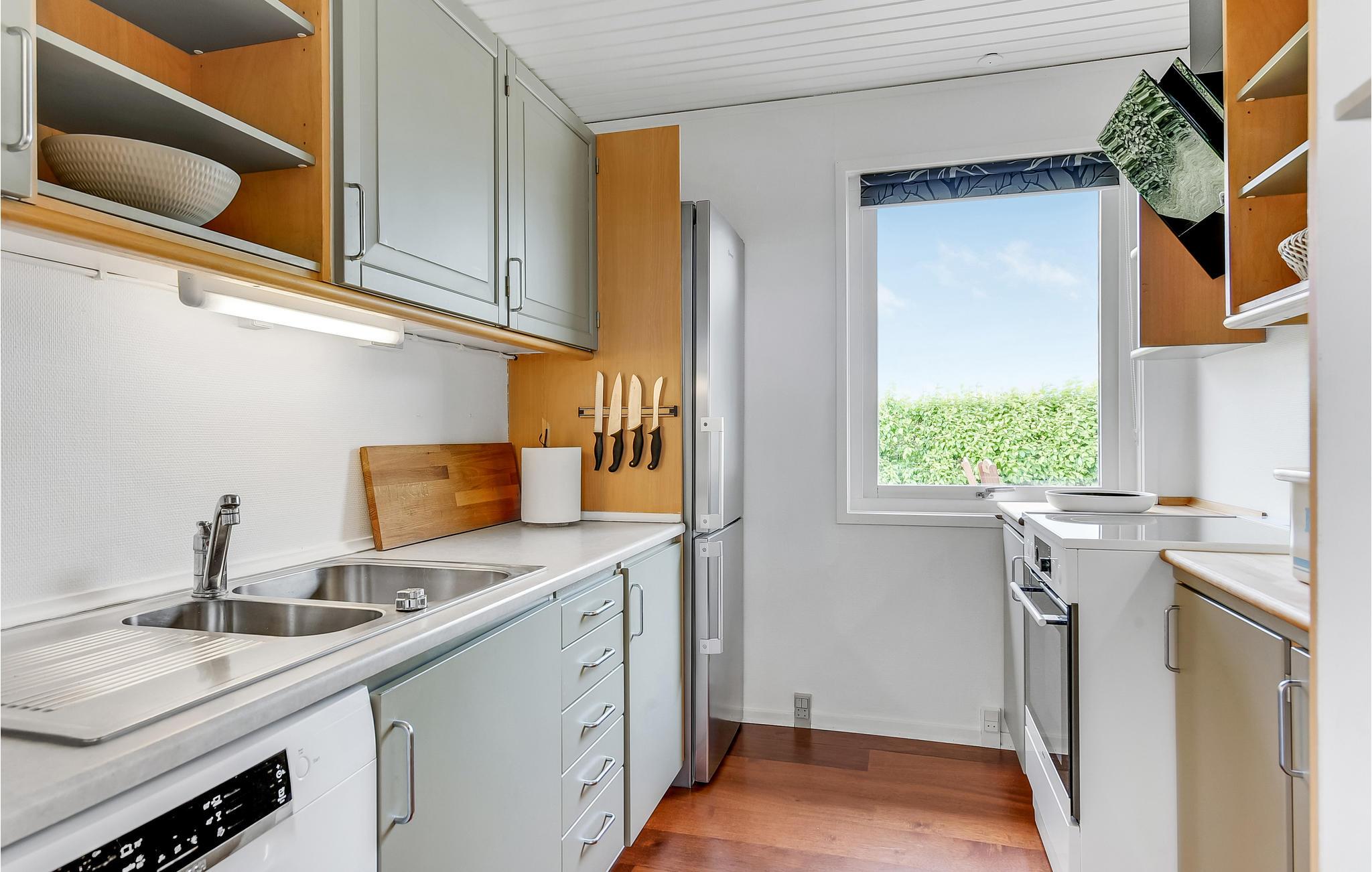 Der offene Wohnbereich mit großer Sofaecke und Fernseher lädt zu entspannten Stunden ein, während die bodentiefen Fenster viel Tageslicht hereinlassen. Nehmen Sie am Esstisch Platz und genießen Sie den freien Blick ins Grüne. Die gut ausgestattete Küche mit modernen Geräten, großzügiger Arbeitsfläche und viel Stauraum ermöglicht es Ihnen, Mahlzeiten bequem zuzubereiten.