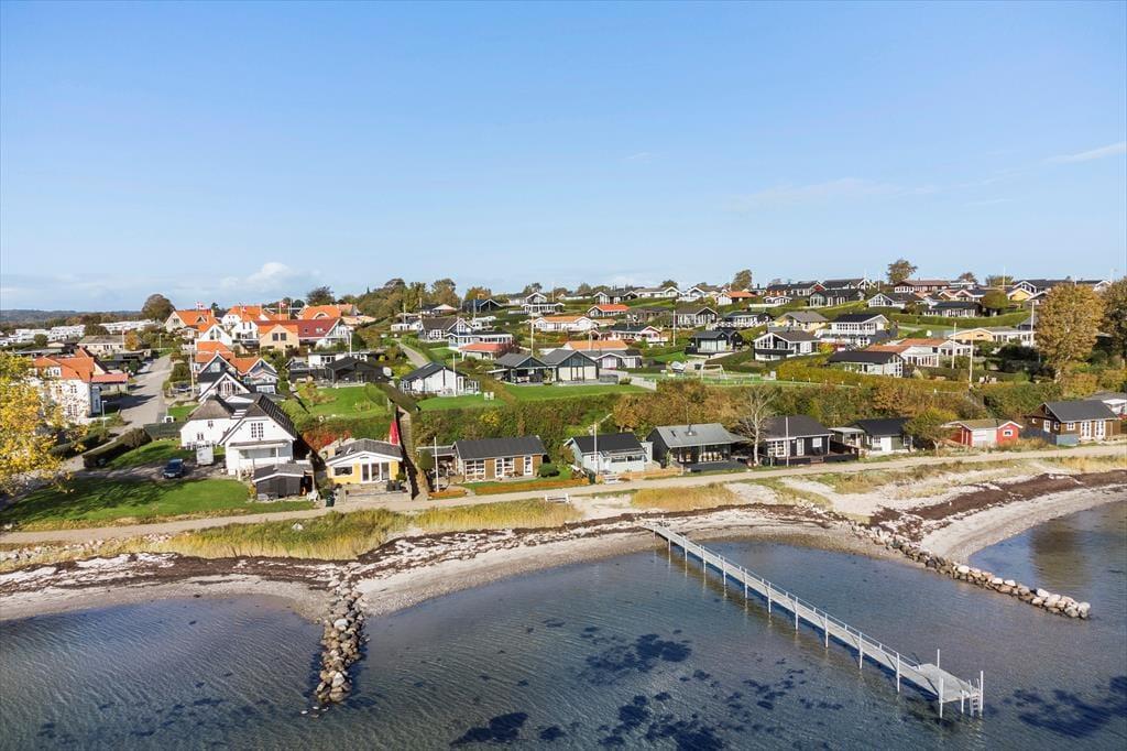 Die herrliche Terrasse vor dem Haus ist der ideale Ort, um sich zu entspannen und zu sonnen, während du die wunderschöne Aussicht auf das Wasser genießt. Stell dir vor, du sitzt hier mit einem guten Buch und hörst dem beruhigenden Plätschern der Wellen zu, während die Sonne auf dich scheint. Hinter dem Haus findest du eine weitere Terrasse, die zu schönen Stunden einlädt – der perfekte Ort, um zu grillen und gemeinsam mit der Familie im Freien zu essen. Abends kannst du dich zu gemütlichen Stunden am Grill versammeln und Geschichten teilen, während der Sonnenuntergang den Himmel in den Farben eines dänischen Sommerabends malt. Sowohl Kinder als auch Erwachsene werden es lieben, vom Badeanleger zu schwimmen oder Sandburgen am nahegelegenen Hejlsminde Strand zu bauen – dies ist der Ort, wo das Glück grenzenlos ist.