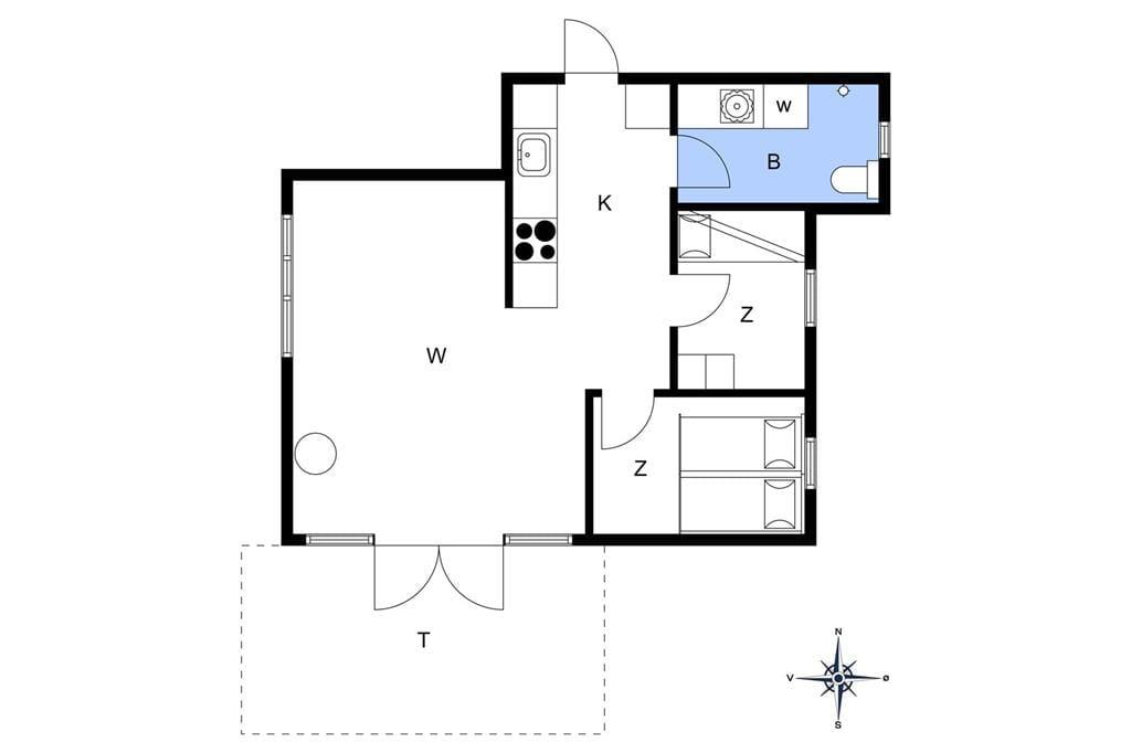 Willkommen in deinem Ferienhaus: Das Ferienhaus verfügt über eine offene Küche und ein Wohnzimmer in einem Raum. Die helle, gepflegte Küche ist mit Kochplatten, Backofen und Kühlschrank mit Gefrierfach ausgestattet. Das Wohnzimmer bietet Zugang zur Terrasse, einen Essbereich, Kaminofen und TV mit Satellitenanschluss. Das Badezimmer verfügt über Fliesenboden, Duschkabine und Waschmaschine. Es gibt zwei Schlafzimmer – eines mit Doppelbett und eines mit Etagenbetten. Das Haus wird mit Kaminofen und Elektroheizung beheizt.