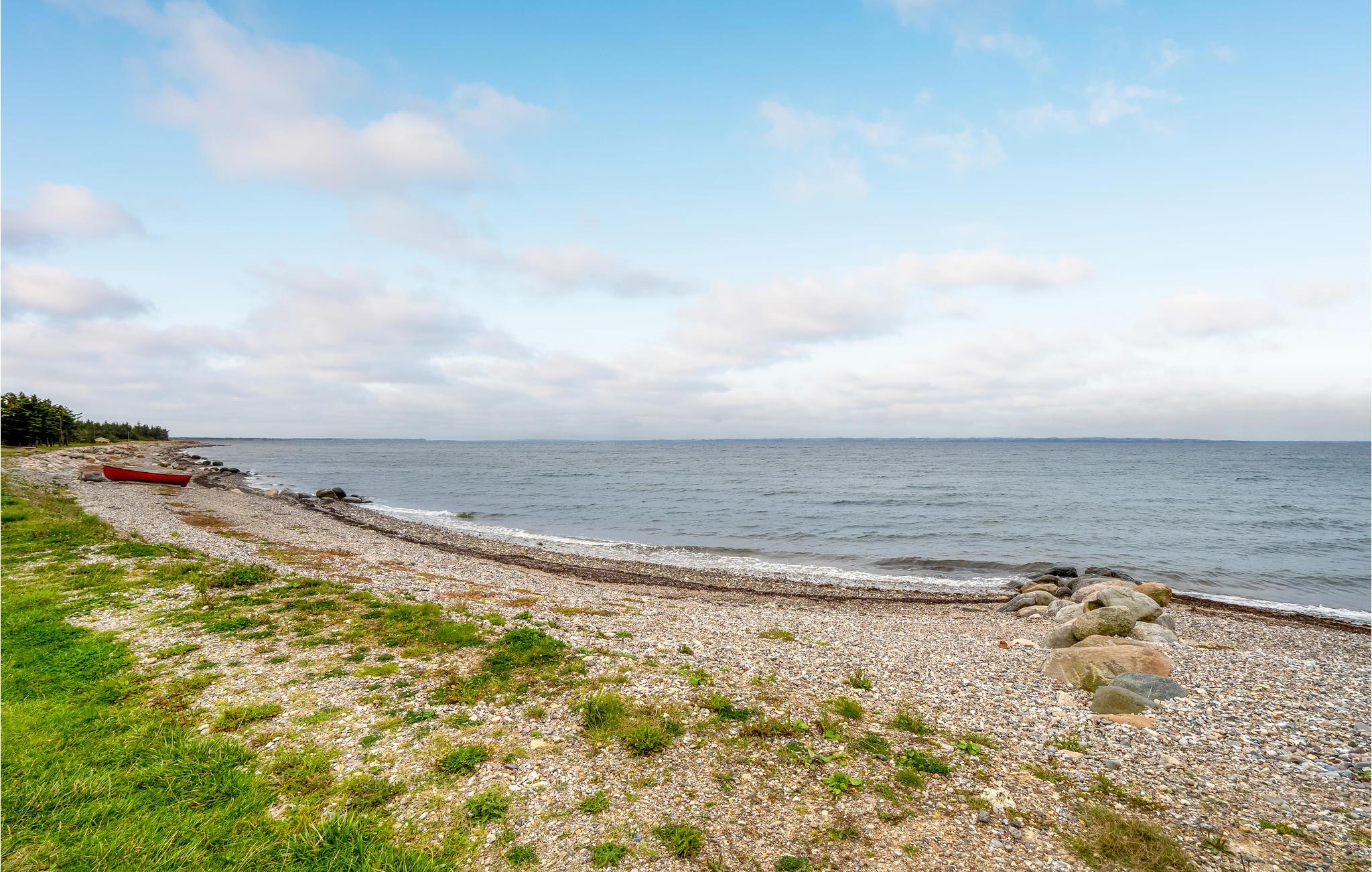 Dieses Ferienhaus bietet eine ungewöhnlich gute Lage, uneingeschränkt zum Wasser hin offen. Von hier aus haben Sie eine schöne Aussicht über das Wasser und können dem Verlauf der Sonne über dem Meer von früh bis spät folgen. Das Haus ist mit einer offenen Küche mit Essbereich eingerichtet, und in der Zwischenetage ist eine Galerie, die sicherlich die Kleinsten ansprechen wird, die sich dort oben Seemannsgarn erzählen können, ohne von den Erwachsenen gestört zu werden. Die Terrasse ist teilweise überdacht und lädt zu langen Stunden mit Aussicht über die grüne Umgebung und dem Meer ein.