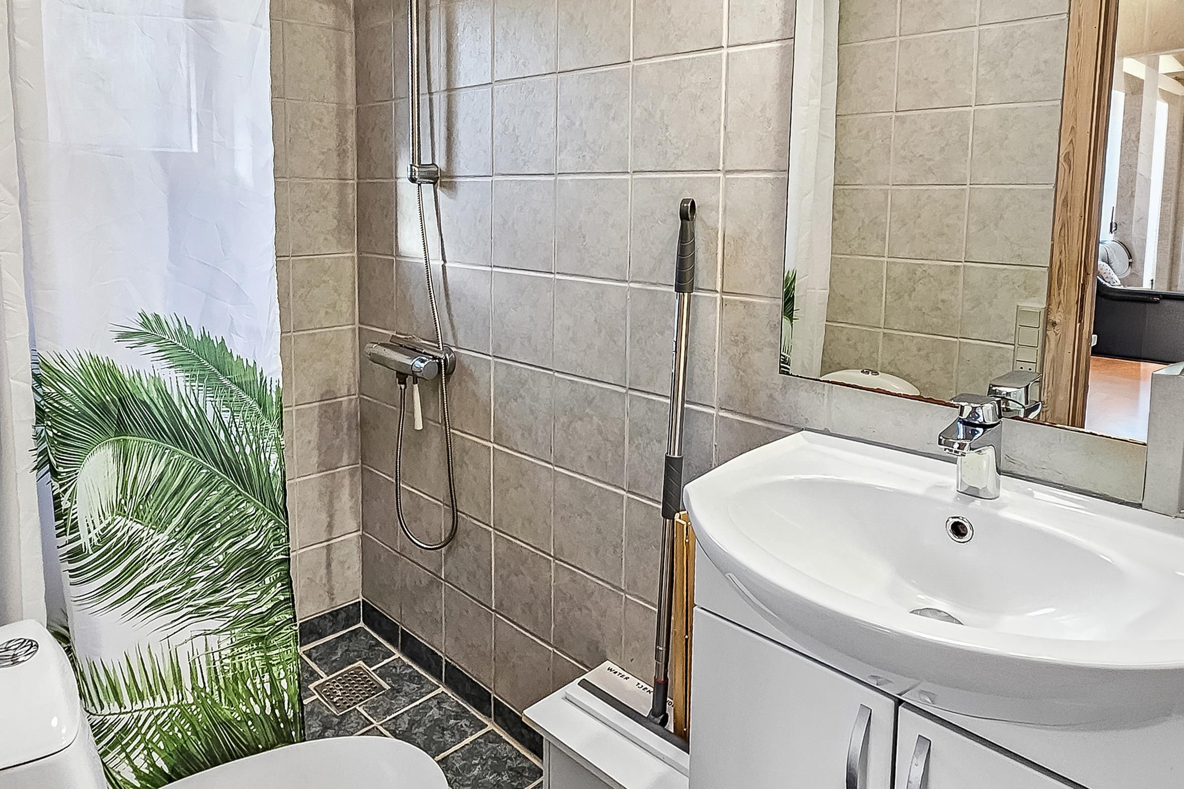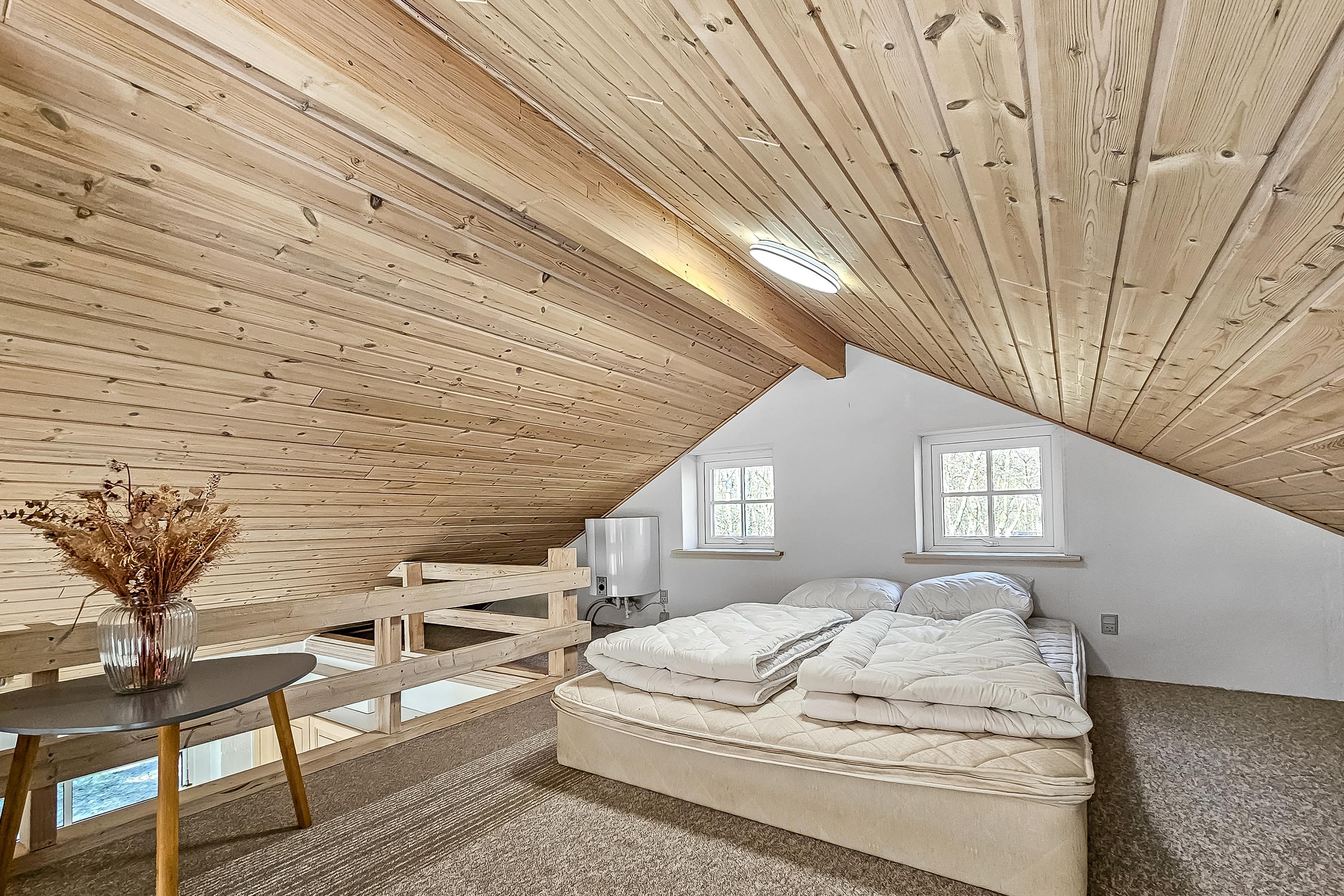 Das Haus verfügt über drei geräumige Schlafzimmer, alle mit Doppelbetten, die für einen erholsamen Schlaf sorgen. Zusätzlich gibt es einen Schlafbereich im Dachgeschoss für zwei weitere Personen, sodass die Gesamtschlafkapazität auf acht Personen erweitert werden kann. Das moderne Badezimmer ist mit Dusche und WC ausgestattet, sodass sich alle nach einem erlebnisreichen Tag erfrischen können.