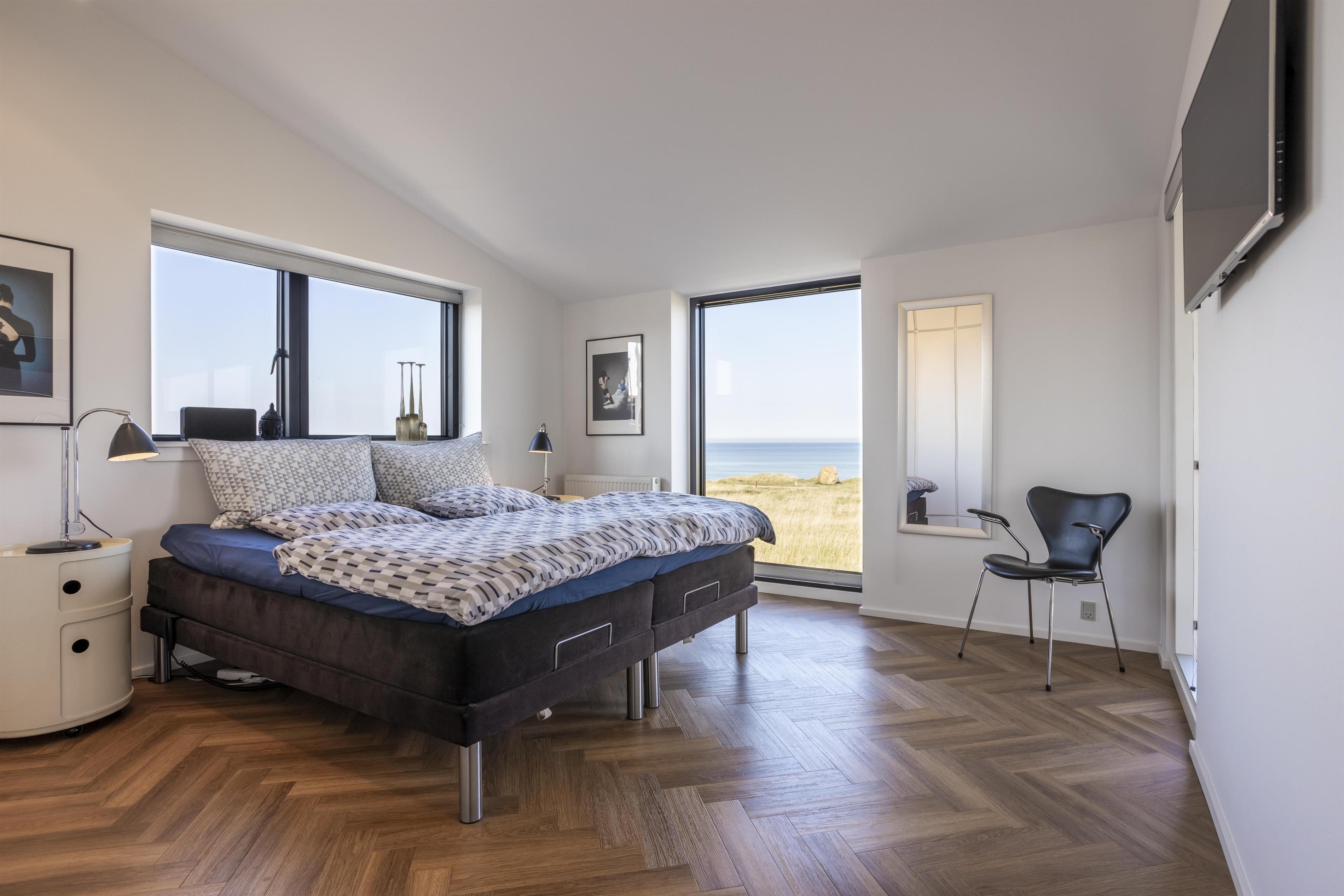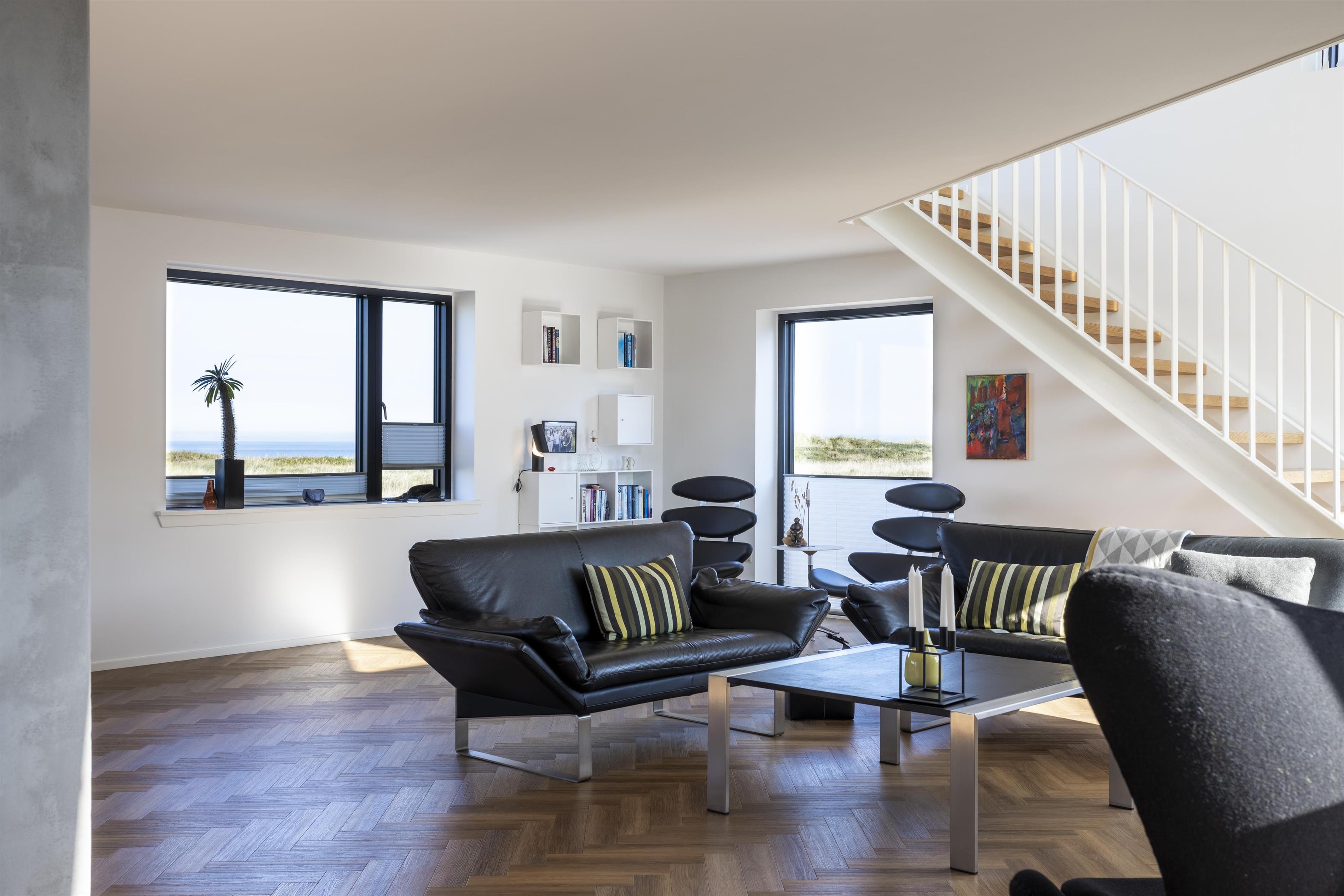 Dieses großzügige Ferienhaus mit 225 m² bietet Platz für 4 Personen und besticht durch ein modernes und stilvolles Design, das Komfort und Qualität in den Vordergrund stellt. Das Haus verfügt über zwei Schlafzimmer und zwei Badezimmer, von denen eines mit einem Whirlpool ausgestattet ist - ideal zur Entspannung nach einem Tag am Strand. Von mehreren Räumen im Haus aus können Sie durch die großen Fensterfronten eine fantastische Aussicht auf die Nordsee genießen, die Licht und Natur in die Wohnräume bringt. Die moderne und gut ausgestattete Küche lädt zum gemeinsamen Kochen und zu gemütlichen Momenten mit Meerblick ein.