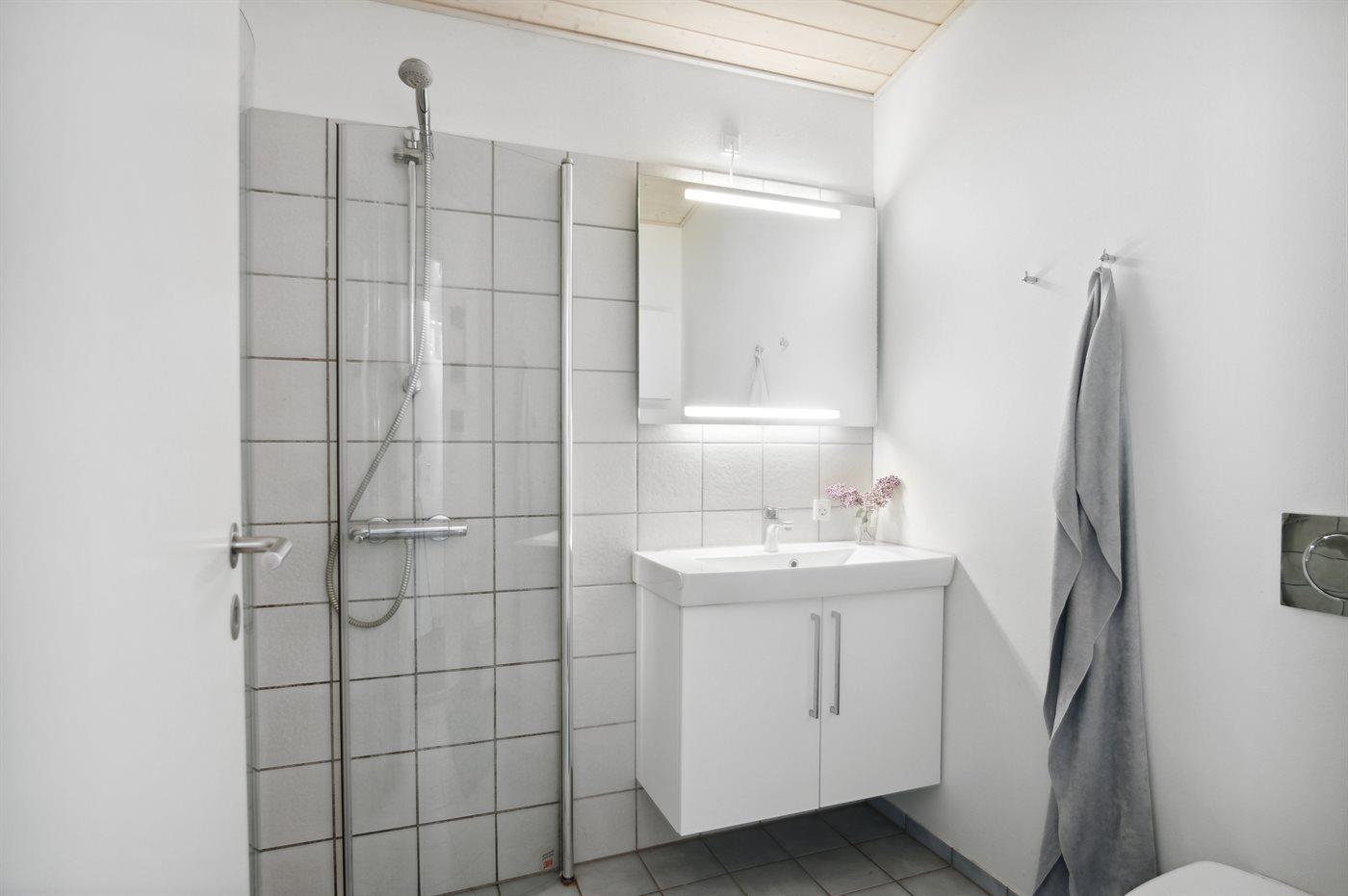 Es gibt 1 Badezimmer mit Duschnische und 2 Toiletten, davon 1 Gästetoilette. Fußbodenheizung in 1 Badezimmer.