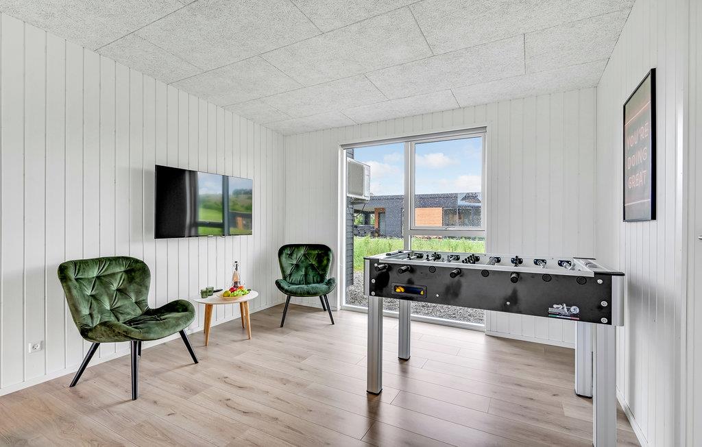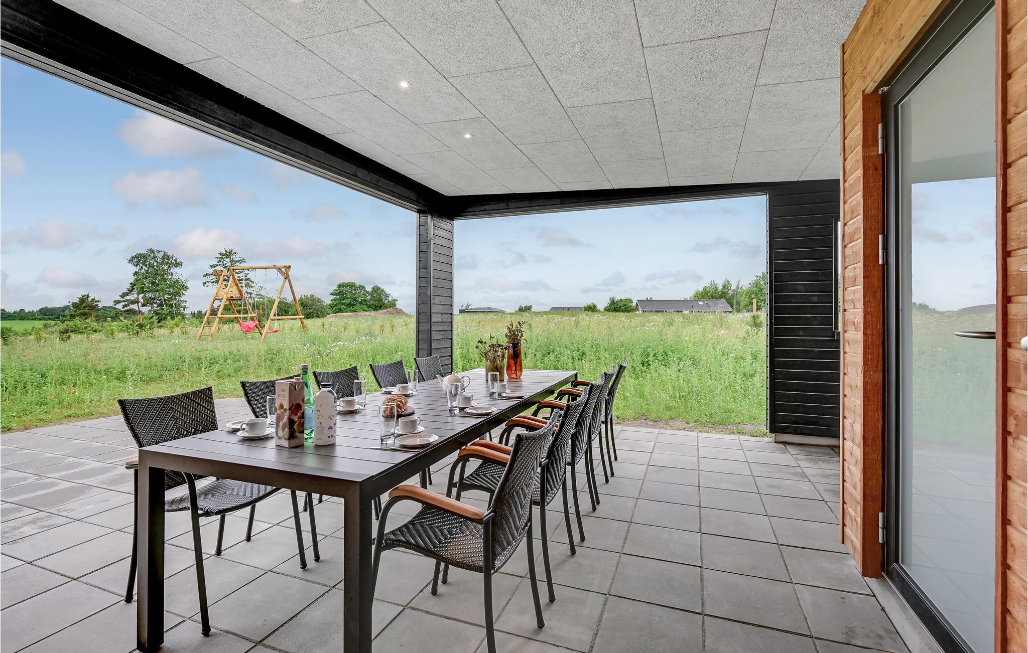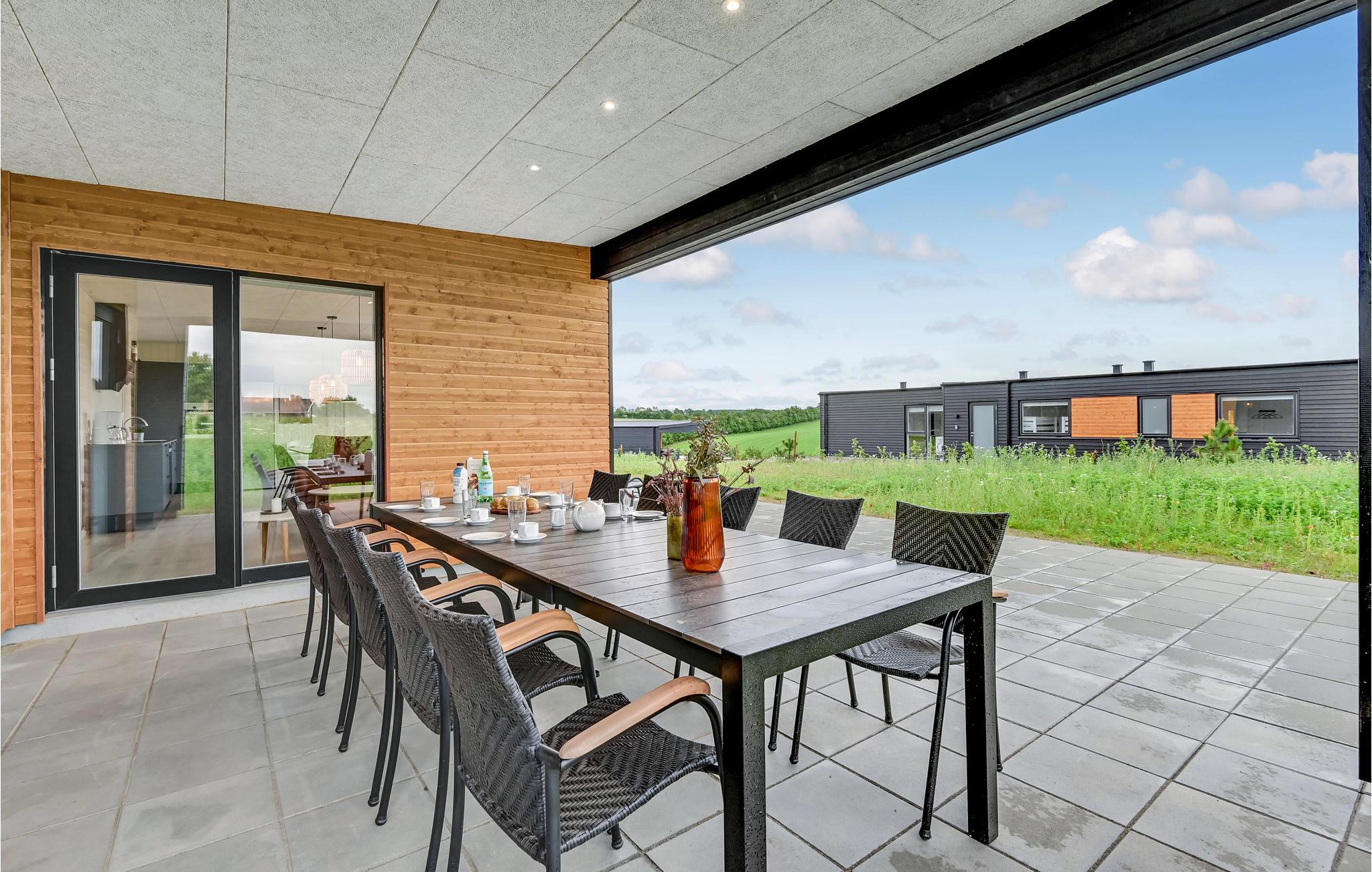 Modernes Ferienhaus mit großem Garten, Fjordblick und Wellnessbereich in Løgstrup, Dänemark, ideal für erholsame Urlaubstage.