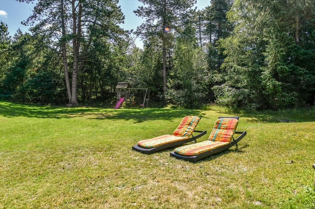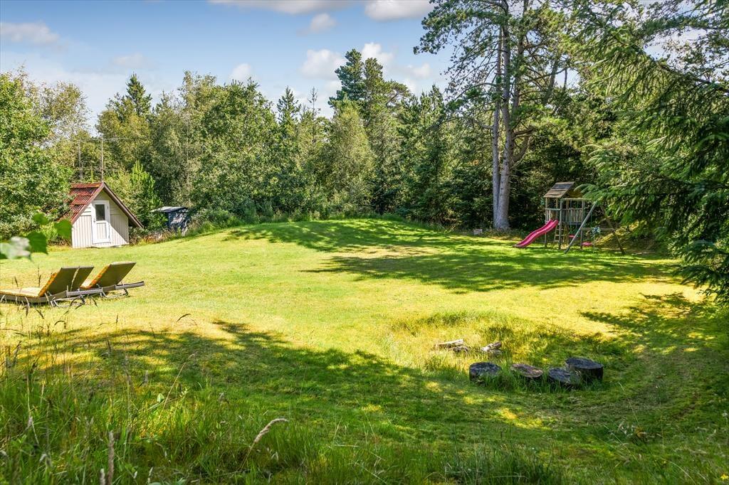 Die Außenbereiche des Ferienhauses sind eine wahre Oase. Das große, uneinsehbare Grundstück ist von einer grünen Rasenfläche umgeben, die reichlich Gelegenheit zum Spielen und Sport bietet. Hier können die Kinder Fußball spielen, Frisbee werfen oder am Spielturm spielen, während die Erwachsenen vielleicht einen entspannenden Nachmittag im Garten mit einem guten Buch oder einer Tasse Kaffee genießen. Der große Rasen ist perfekt für alle Arten von Outdoor-Aktivitäten und bietet viel Platz, um die Sonne zu genießen oder eine Runde Badminton zu spielen. Die große Terrasse ermöglicht es dir, im Freien zu essen, zu grillen und Zeit unter freiem Himmel zu verbringen, während du den Blick auf den wunderbaren Gartenbereich genießt.