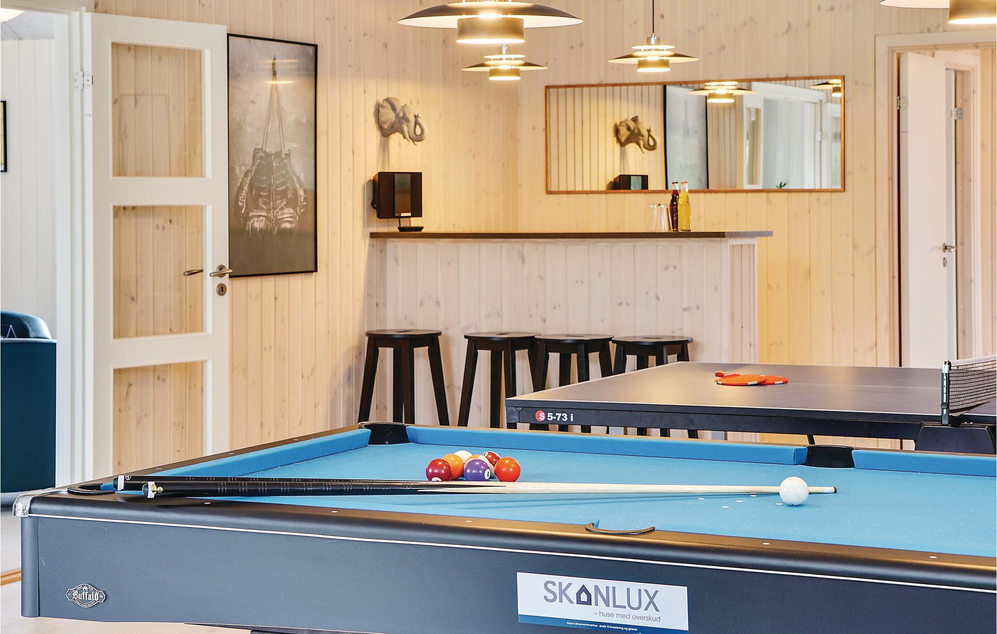 Luxuriöses Ferienhaus in Dänemark mit eigenem Pool, Sauna und großem Aktivitätsraum für unvergessliche Urlaubsmomente.
