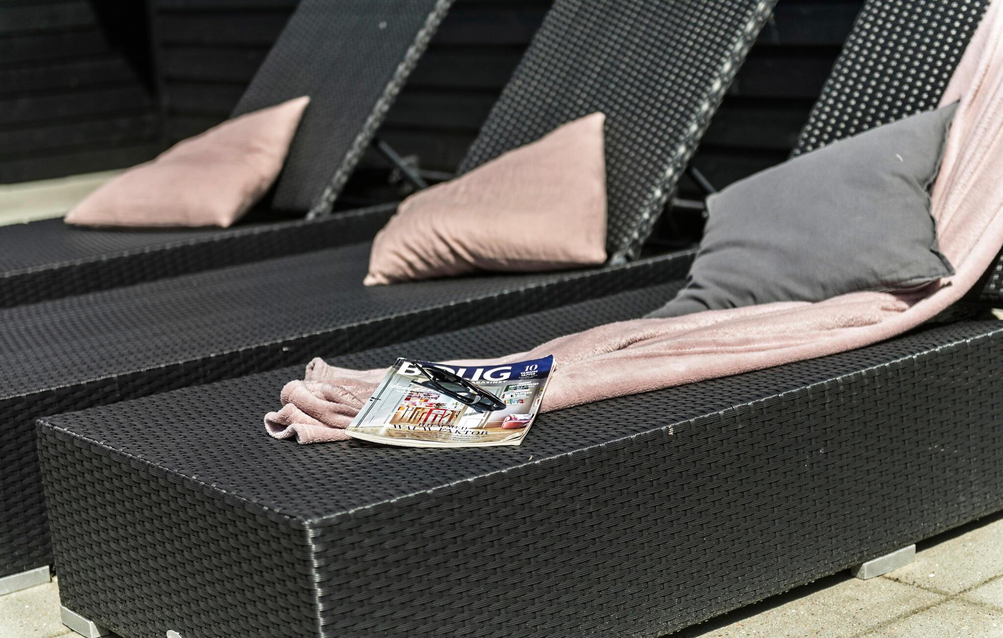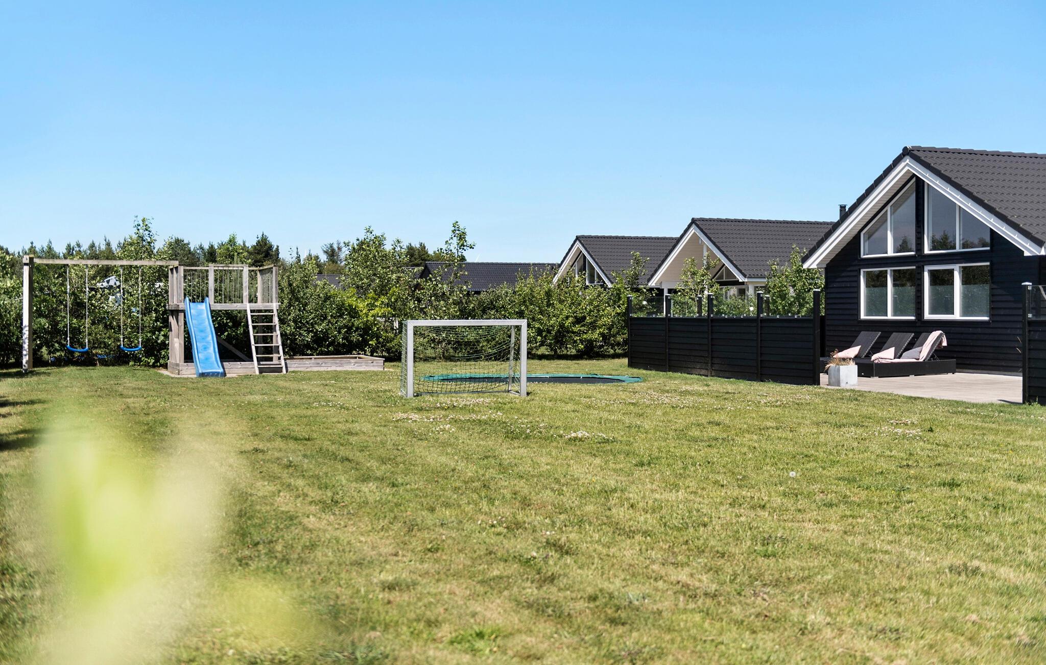 Genießen Sie den dänischen Sommer auf der Terrasse mit Gartenmöbeln und Grill. Die Terrasse ist geschlossen und teilweise überdacht, sodass Sie sowohl Schatten als auch Privatsphäre haben. Kinder können sich im Garten mit Schaukel, Sandkasten und Trampolin vergnügen.