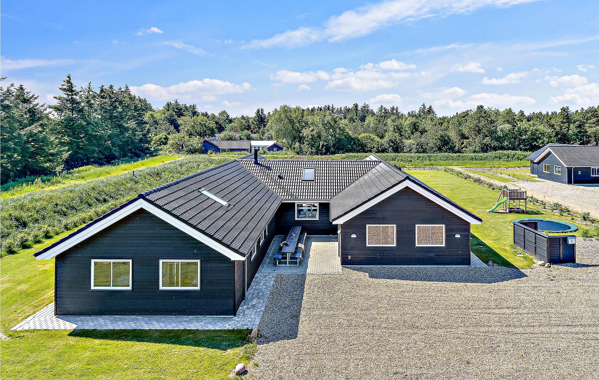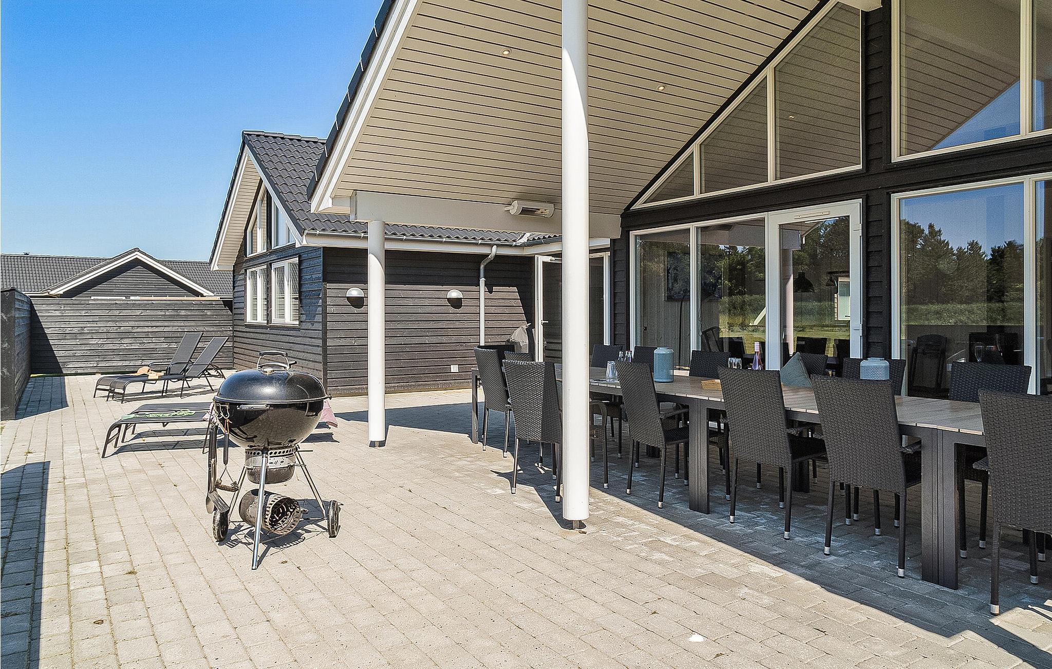 Dieses luxuriöse Ferienhaus mit Swimmingpool befindet sich inmitten des schönen Ferienhausgebiets von Houstrup. Das Haus ist perfekt für eine große Familie oder mehrere Familien, die einen Urlaub unter einem Dach verbringen möchten. Hier bekommen Sie das komplette Urlaubserlebnis, unabhängig davon, ob Sie Entspannung oder Aktivität suchen. Im hauseigenen Wasserpark können Sie den Pool mit Wasserrutsche, Gegenstromanlage, großem Whirlpool mit Platz für 4-6 Personen und Sauna genießen. Sollten Sie einen aktiven Urlaub wünschen, hat das Ferienhaus viele Indoor-Aktivitäten zu bieten. Der Hobbyraumraum umfasst Billard, Tischtennis und Tischfußball. Von der Bar in der Ecke können die Zuschauer ein kühles Getränk genießen. Die schöne, moderne Küche ist stilvoll eingerichtet, gut ausgestattet und verfügt über eine direkte Verbindung zum Wohnzimmer.