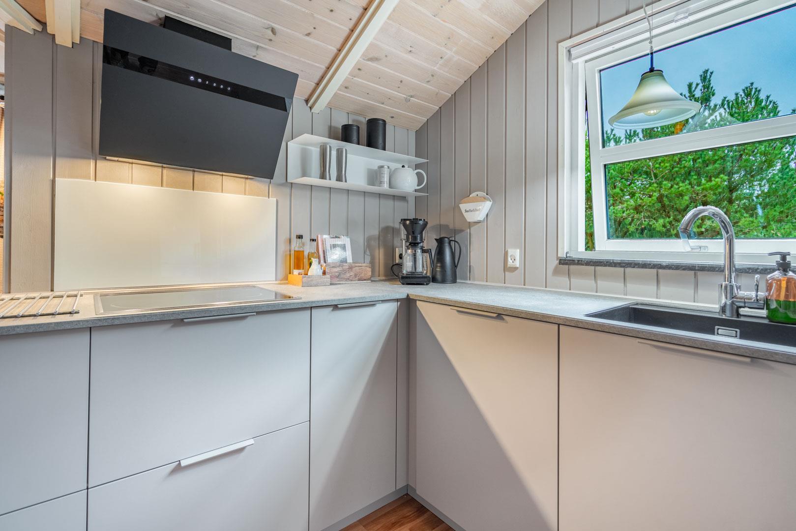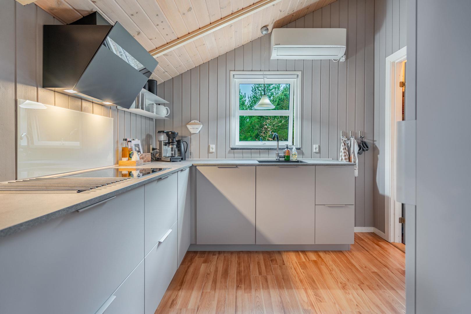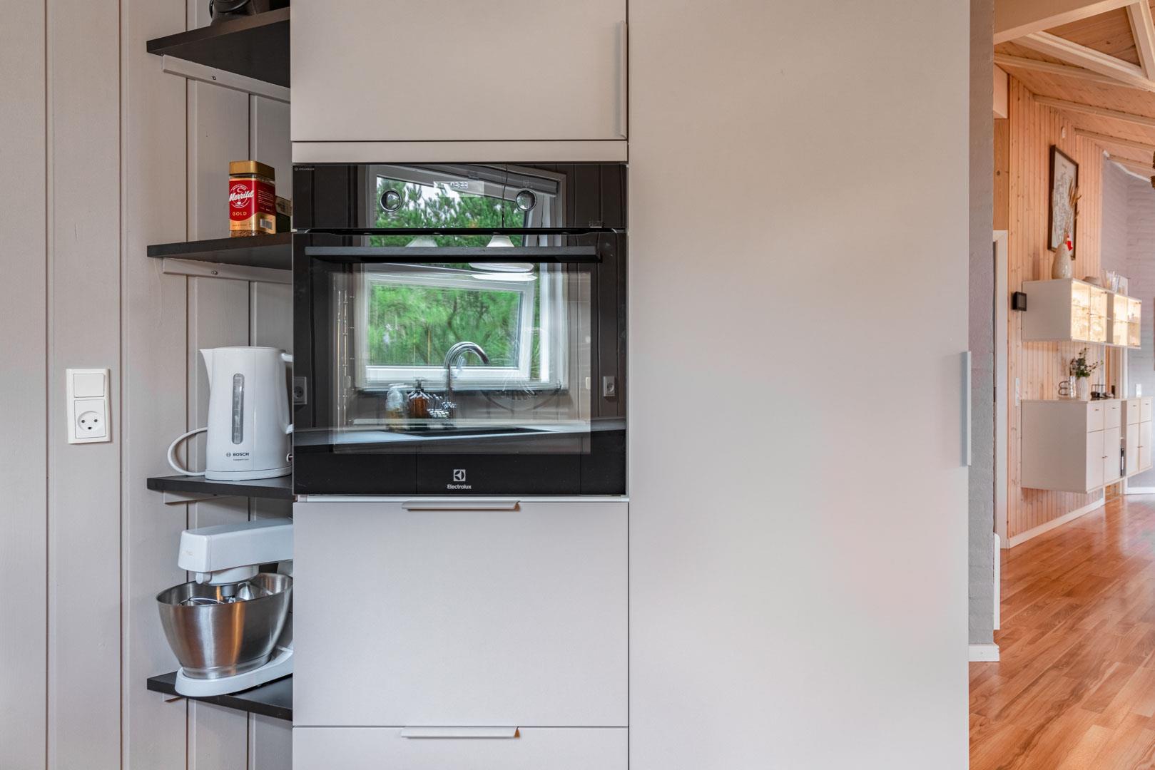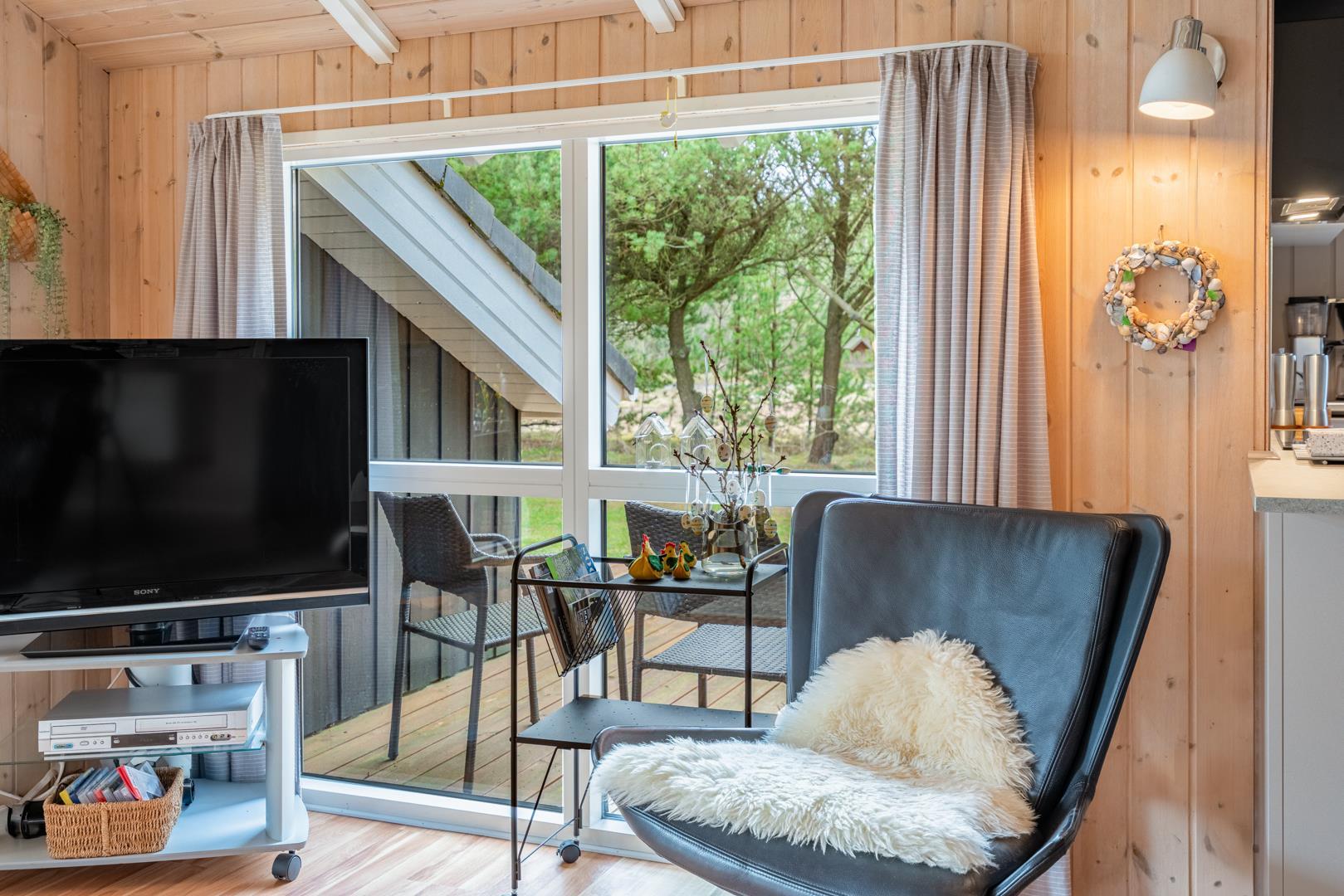 Die Farben der Natur bilden eine schöne Kulisse für den Familientreffpunkt im Wohnzimmer, wo sich eine Fensterfront vom Boden bis zur Decke erstreckt, und die weichen Sofas laden zu langen Gesprächen am gemütlichen Feuerschein des Ofens ein. Wenn Sie während der Sommersaison hier sind, können Sie die Terrassentür weit offen lassen, um einen natürlichen Übergang zur Außenterrasse zu schaffen. Auf diese Weise haben Sie auch einfachen Zugang zu einem kalten Getränk aus einem der beiden Kühlschränke des Hauses oder zu einem Eis im Gefrierschrank. Das Haus verfügt über eine 1000/1000 MB Internet-Verbindung.