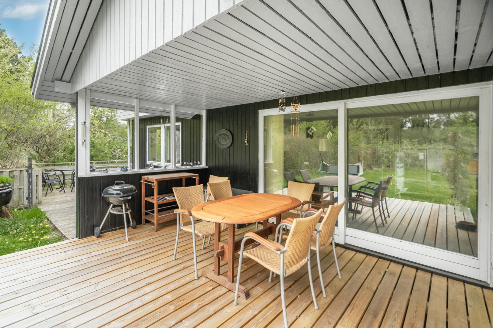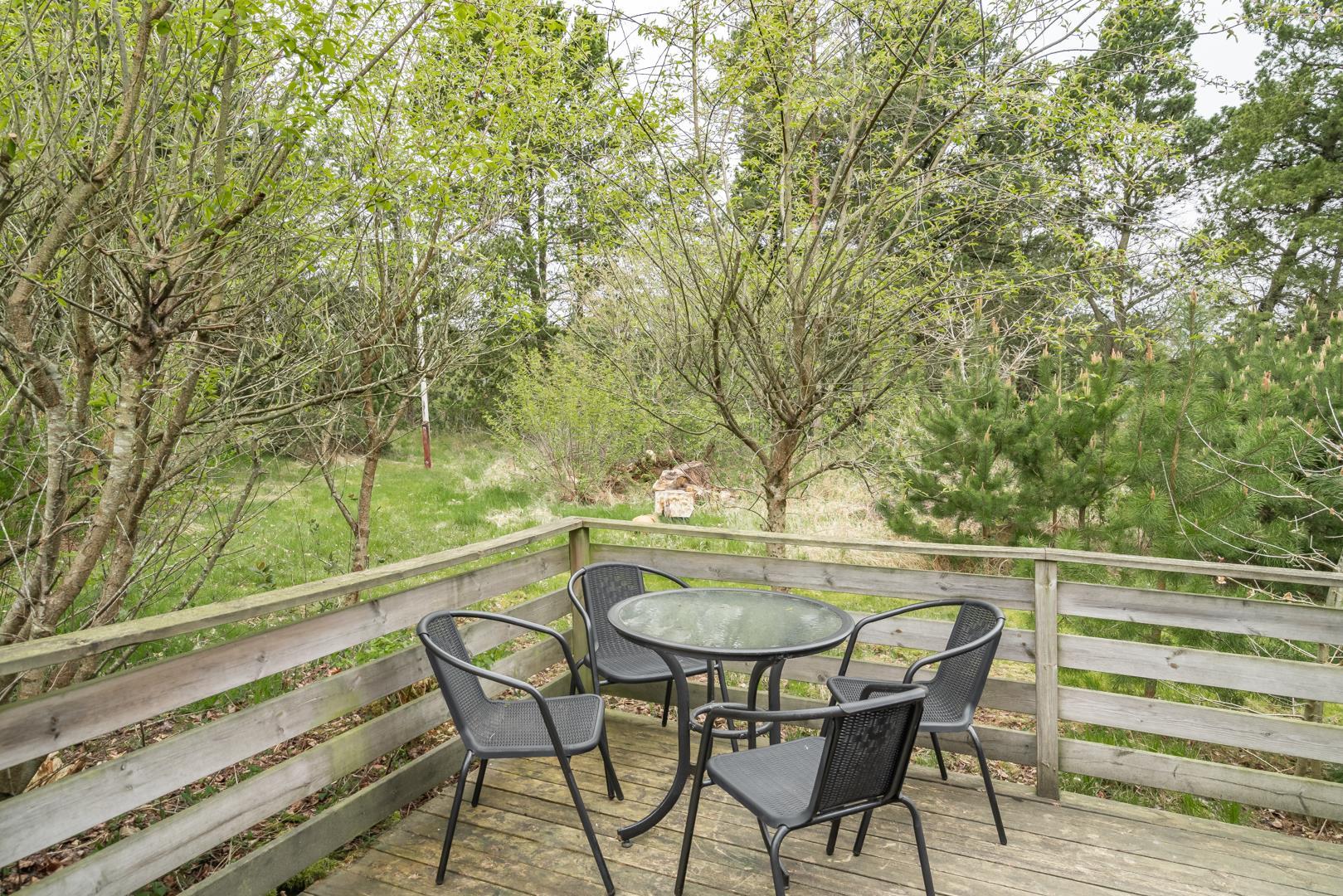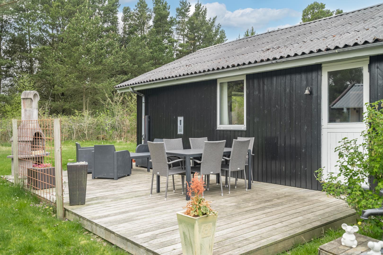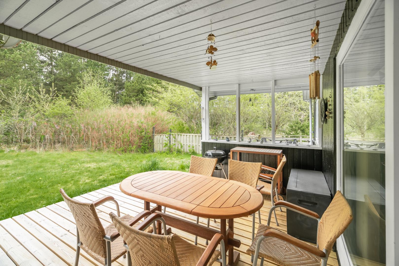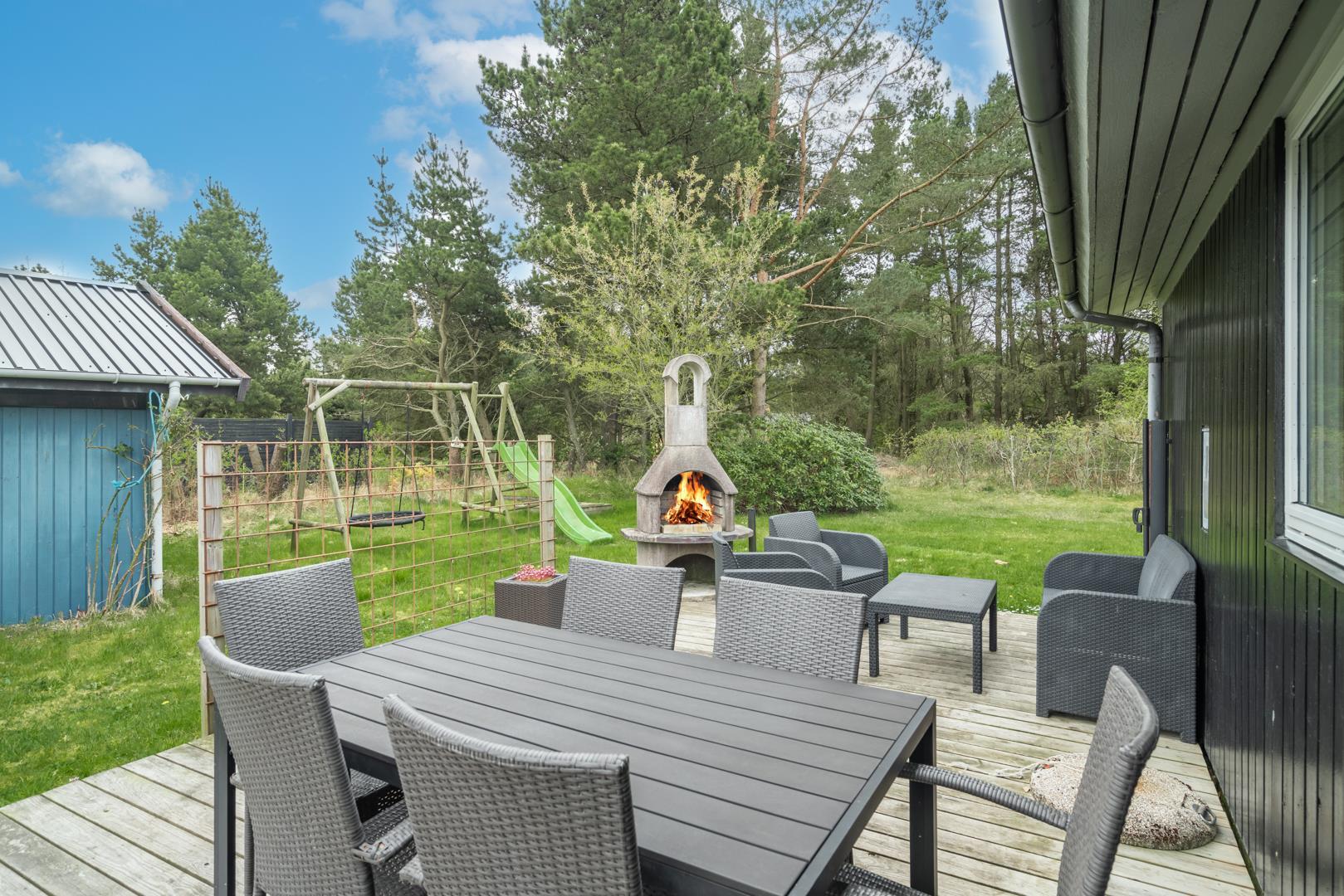Der Außenbereich des Ferienhauses im Engvejen 33 bietet alles, was das Herz von Familien und Hundebesitzern höherschlagen lässt. Das Grundstück ist eingezäunt, sodass Kinder und Hunde sicher spielen und sich frei bewegen können.
