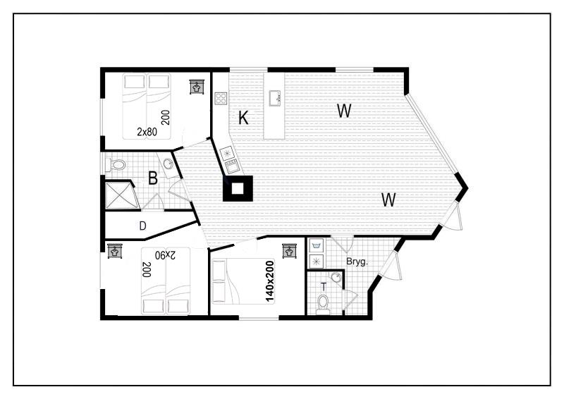 Bettengröße: 1 Doppelbett mit je 2 Matratzen á 90 x 200 cm + 1 Doppelbett mit je 2 Matratzen á 80 x 200 cm + 1 Doppelbett 140 x 200 cm.