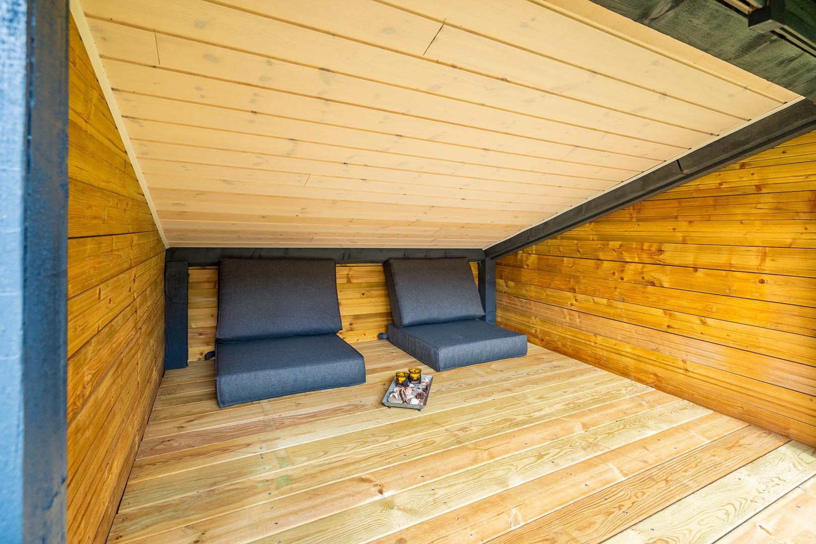 Zusätzlich bietet die überdachte Terrasse die Möglichkeit, bei jedem Wetter draußen zu sitzen – ob beim Frühstück oder einem gemütlichen Grillabend. Hier kannst du die Natur ganz entspannt erleben und den Tag ausklingen lassen.