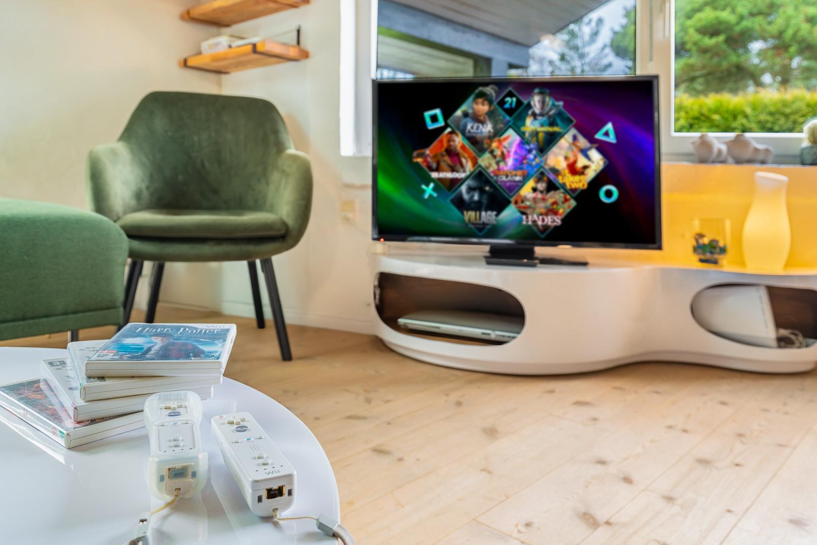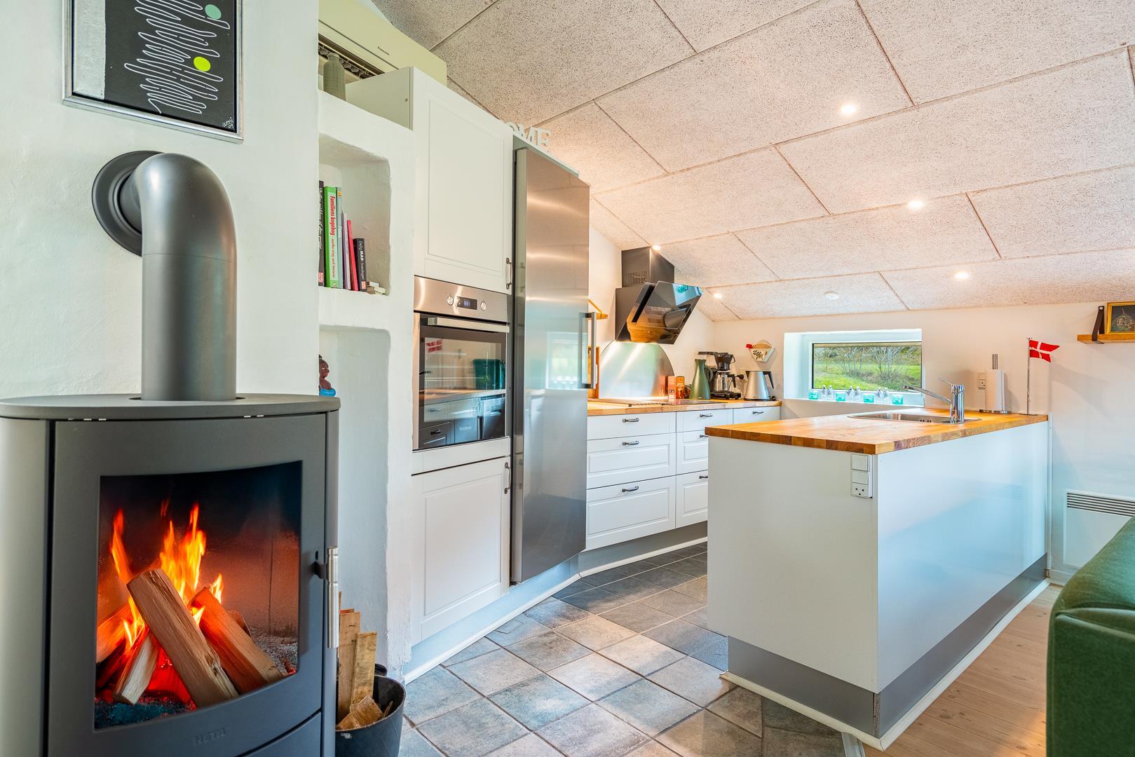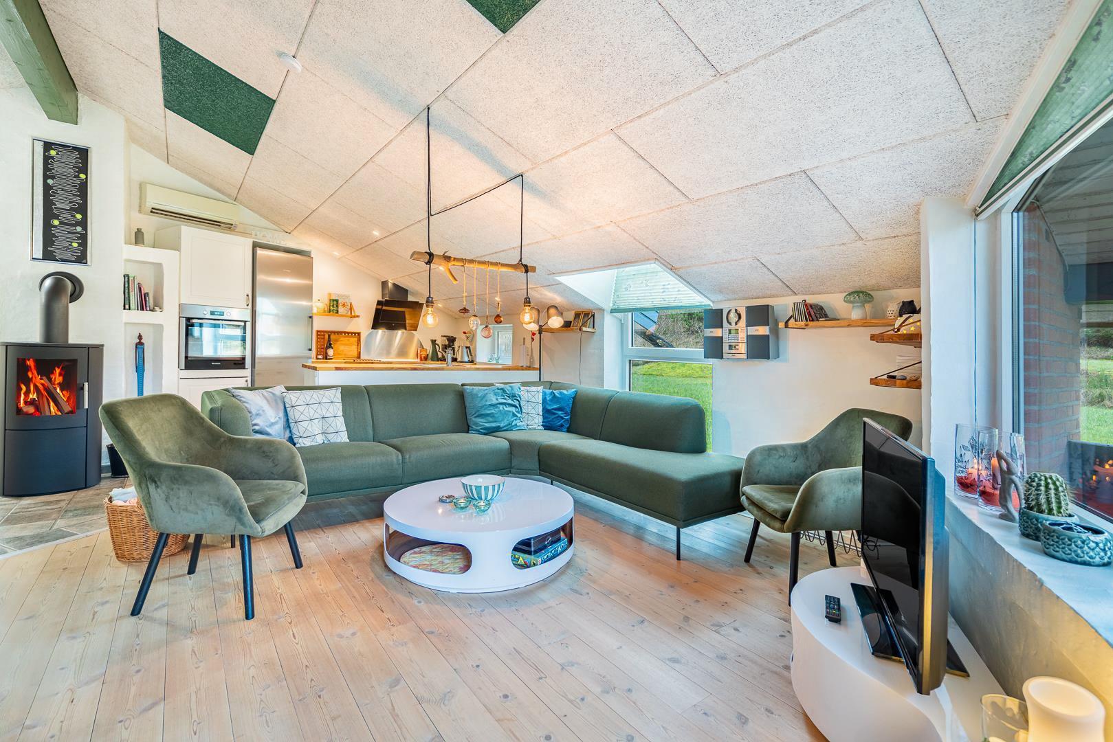 Im Innenbereich erwartet dich ein gepflegtes und laufend modernisiertes Ferienhaus, welches Komfort und nordische Gemütlichkeit perfekt verbindet. Der helle Wohnbereich mit Kamin sorgt für echte Ferienhaus-Atmosphäre – besonders an kühleren Tagen ein Highlight.