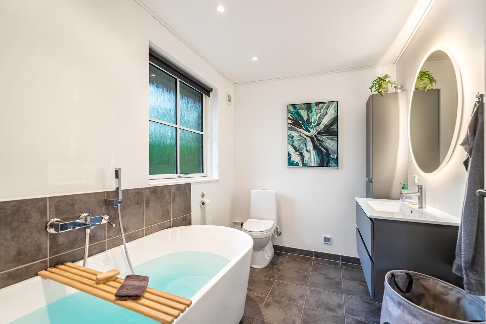 Im Außenbereich warten gleich zwei große Holzterrassen, die je nach Tageszeit Sonne, Schatten oder Windschutz bieten – ideal für Frühstück im Freien oder einen Grillabend. Die große Naturgrundstück bietet viel Platz zum Spielen und Toben, und für Kinder gibt es ein Spielgerüst mit Sandkasten.