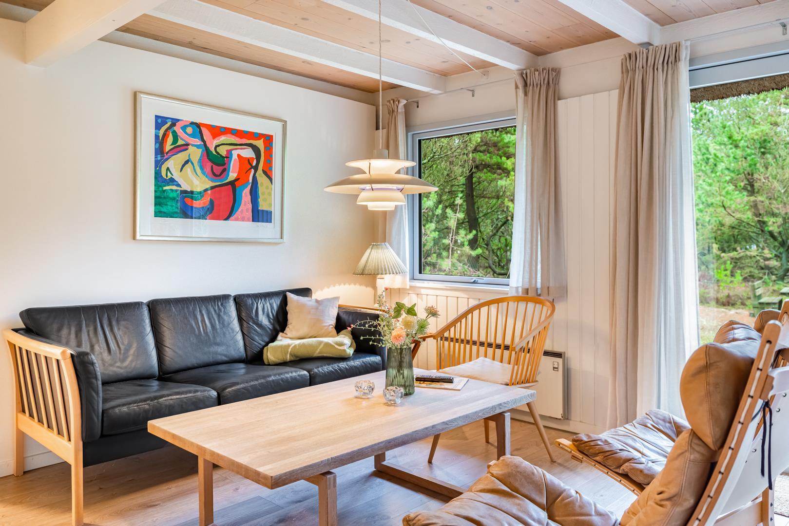 Der Innenbereich im Peder Larsensvej 19 überzeugt mit einer gelungenen Kombination aus modernem Komfort und klassischer Ferienhaus-Gemütlichkeit. Auf 95 m² Wohnfläche findest du ausreichend Platz für bis zu 6 Personen – ideal für einen Urlaub mit Freunden.