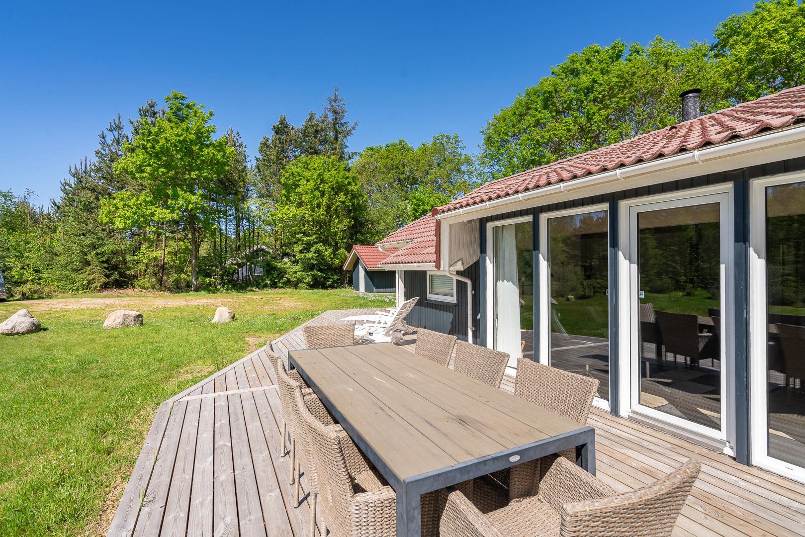 Der Außenbereich von eurem Ferienhaus im Engvejen 7 bietet besonders Familien mit Kindern und Hundebesitzern optimale Bedingungen für einen entspannten Urlaub. Während die Kinder in der Schaukel oder im Sandkasten spielen, könnt ihr auf der teilweise überdachten Terrasse entspannen – geschützt vor der Sonne oder leichtem Regen.