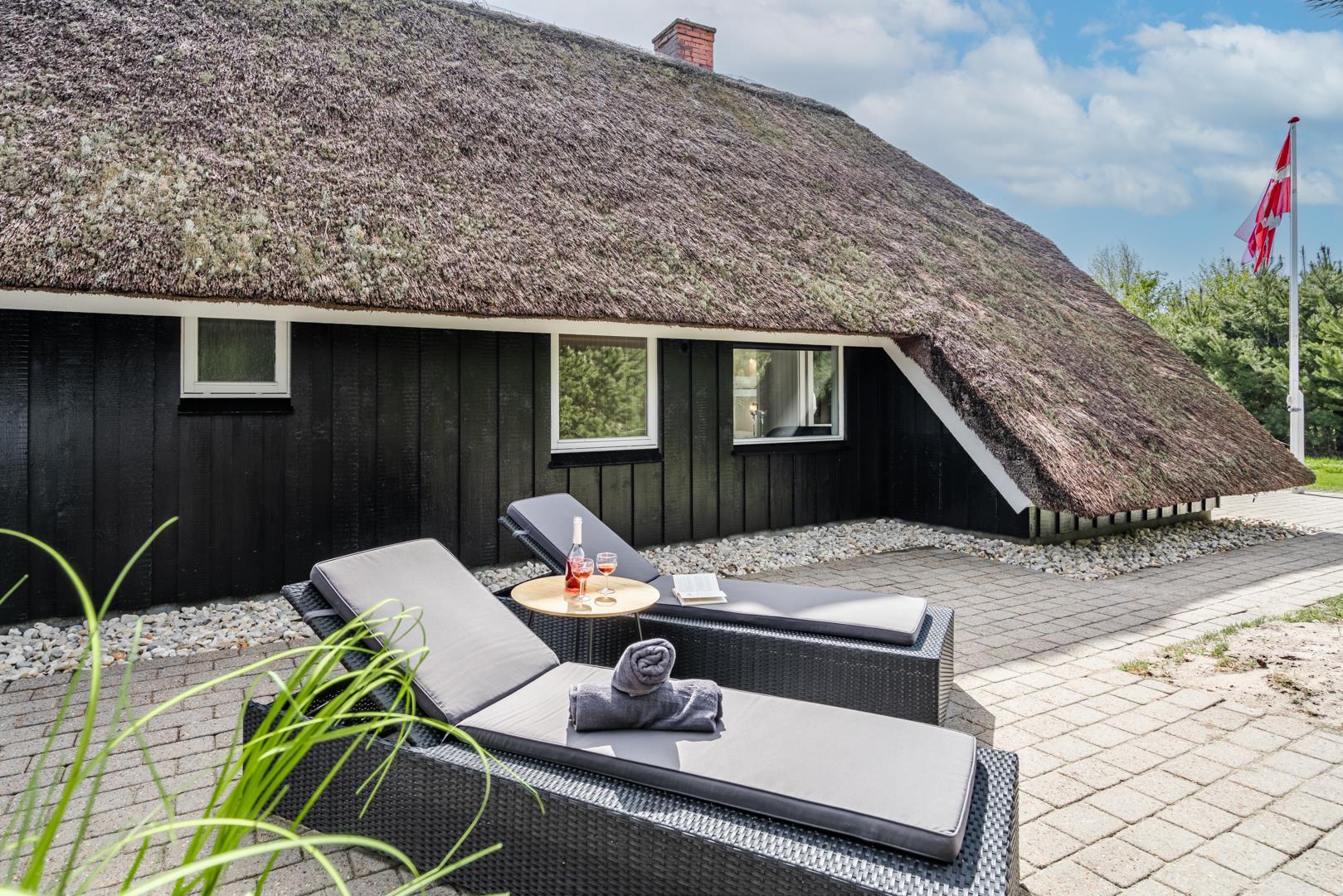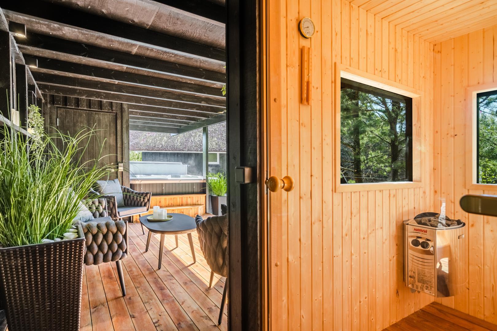 Sind Sie der Typ, der im Urlaub Wert auf Wellness in der Natur legt, dann schauen Sie sich dieses charmante Haus im Søndervang 100 an. Eine große Überdachung mit Außen-whirlpool, Außensauna und natürlich Außendusche in schöner Kombination mit einem Lounge-Set usw. sorgt für einen Rundum-Verwöhnungn. Nach einem Tag voller Entspannung können Sie sogar im Freien in einem Shelter schlafen.