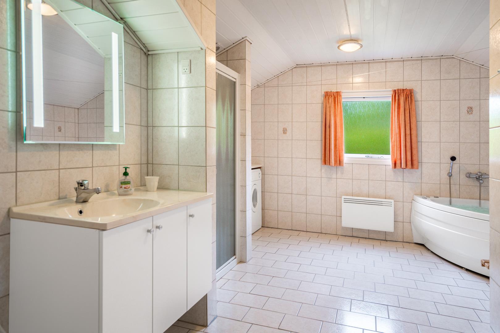 Das große Badezimmer ist mit Fußbodenheizung, Dusche, Whirlpool für zwei Personen und direktem Zugang zur hauseigenen Sauna ausgestattet – ideal zum Entspannen. Zudem stehen Waschmaschine und Trockner zur Verfügung. Die praktische Küche bietet alles, was Sie brauchen: Cerankochfeld, Geschirrspüler, Mikrowelle und guten Stauraum. Die offene Verbindung zur gemütlich eingerichteten Wohnstube sorgt für ein angenehmes Raumgefühl.