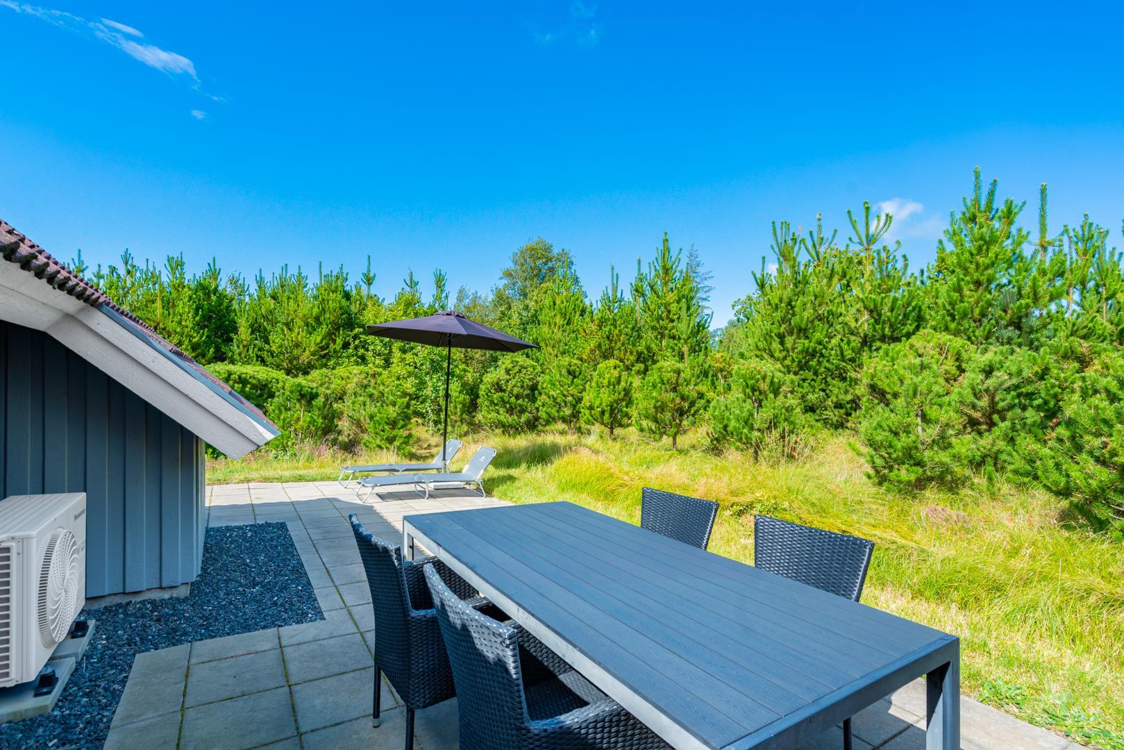 Dieses charmante Ferienhaus aus Holz liegt idyllisch auf einem ruhigen Naturgrundstück in einer Sackgasse – perfekt für entspannte Urlaubstage. Die gepflegte Außenanlage bietet sowohl eine offene als auch eine überdachte Terrasse mit Gartenmöbeln und Sonnenliegen. Hier können Sie windgeschützt die Sonne genießen oder gemeinsame Mahlzeiten im Freien verbringen.